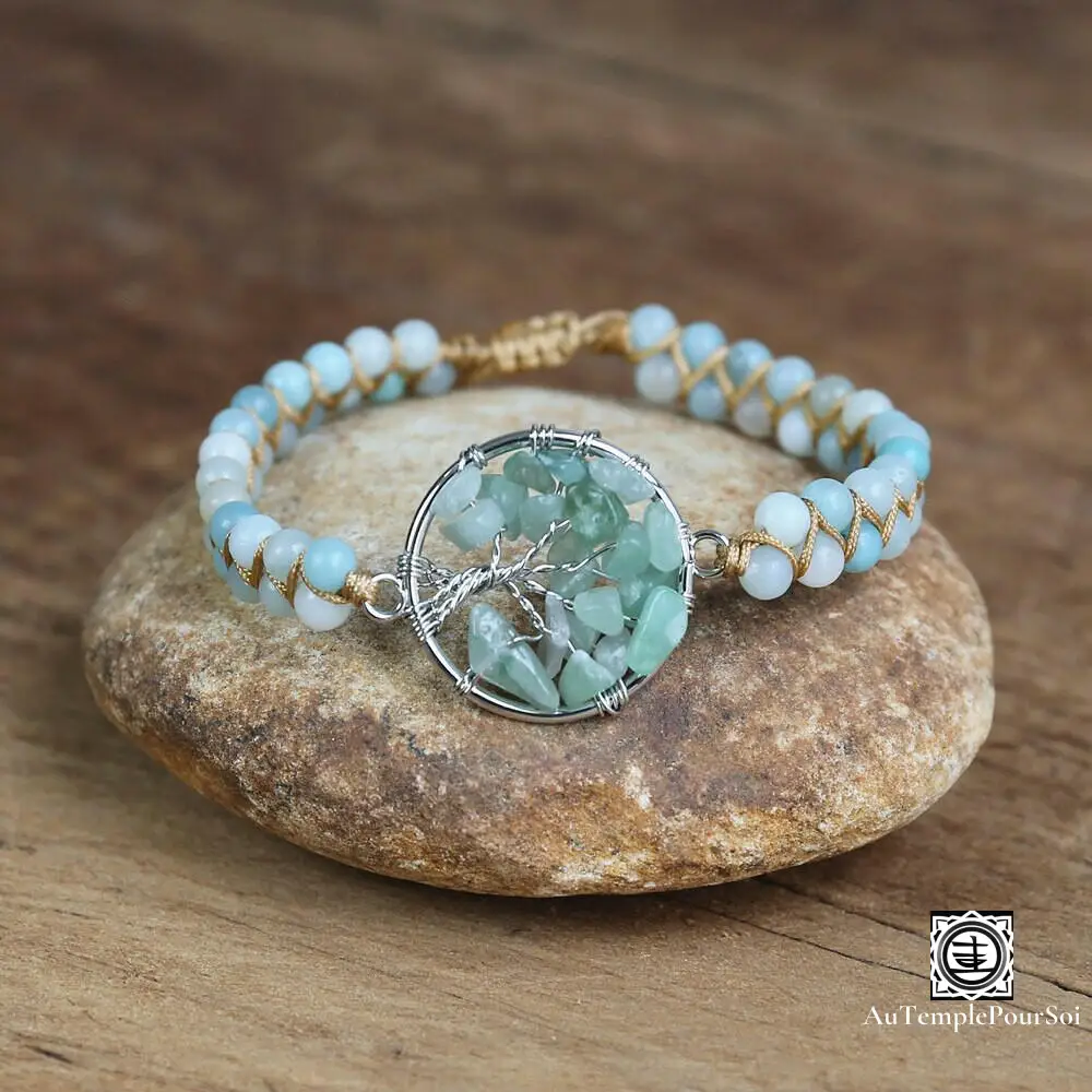 Le bracelet Arbre de vie en pierre naturelle Amazonite et Amethyste est un bracelet tressé avec des pierres naturelles pour se sentir bien.