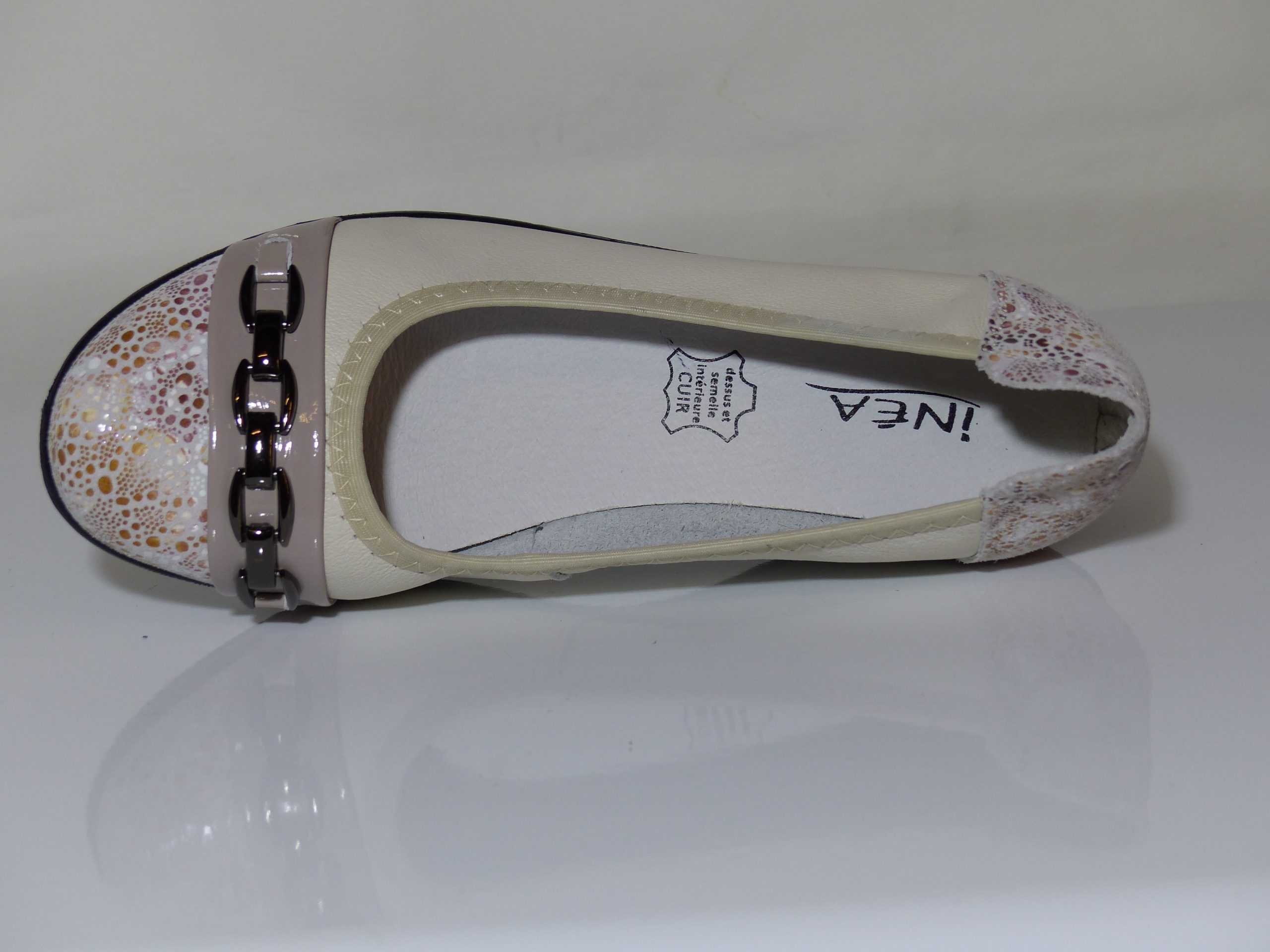 Cette ballerine INEA compensée vous séduira par son confort qui n’est plus à prouver. On aime ce décolleté très confortable grâce à son élastique et son imprimé fantaisie à l’avant et au talon respirant le printemps. On aime aussi sa semelle intérieure cuir sur un support de mousse latex. La semelle extérieure compensée est en élastomère. Le dessus est agrémenté d’une chaînette métallisée.