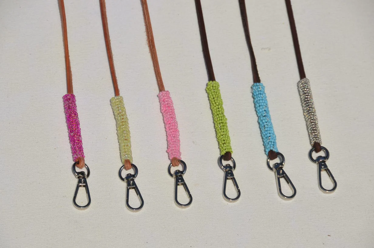 - Superbes bandoulières fines en cuir et perles colorées, disponibles en 6 coloris