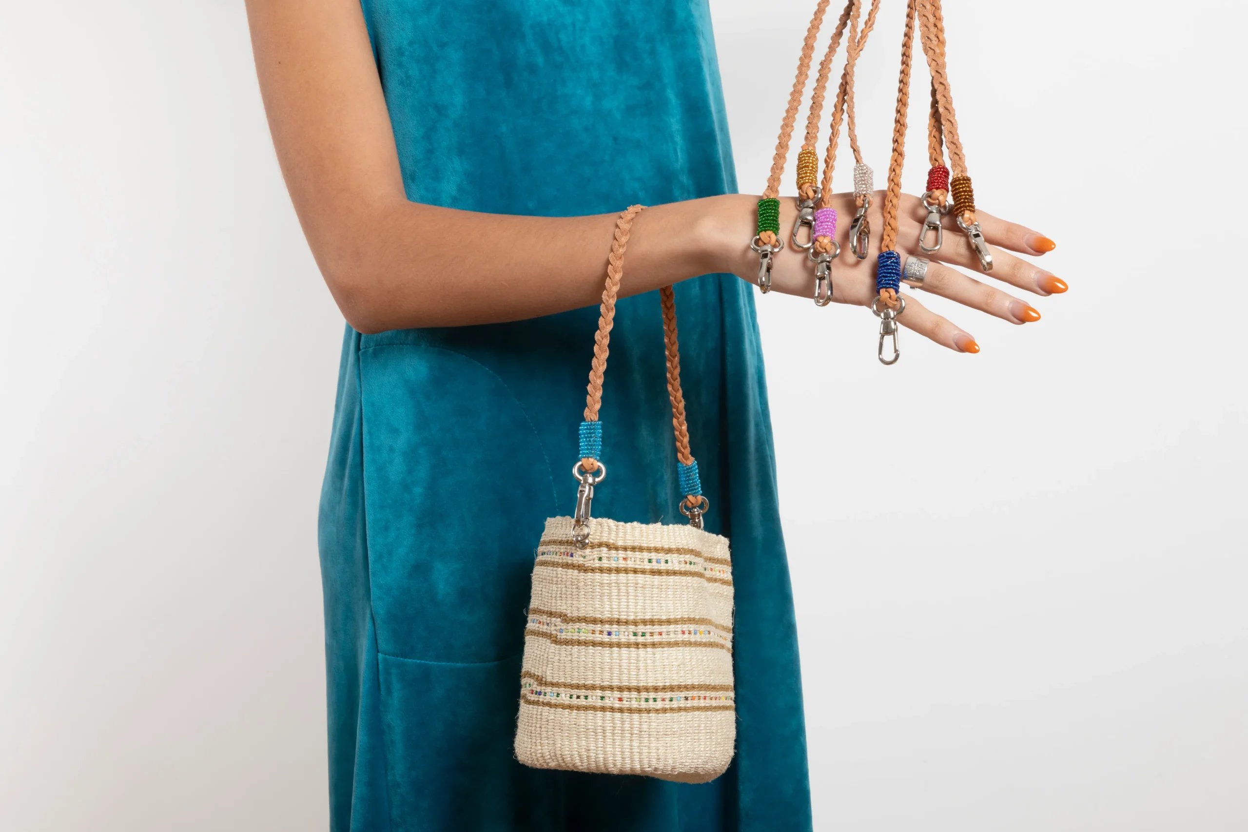 - Superbes bandoulières tressés en cuir et perles colorées, disponibles en 7 coloris