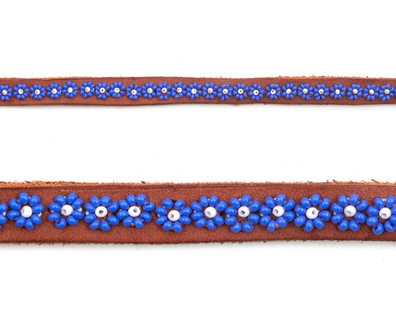 - Superbes bandoulières en cuir tanné brun et perles, disponibles en 52 motifs exclusifs