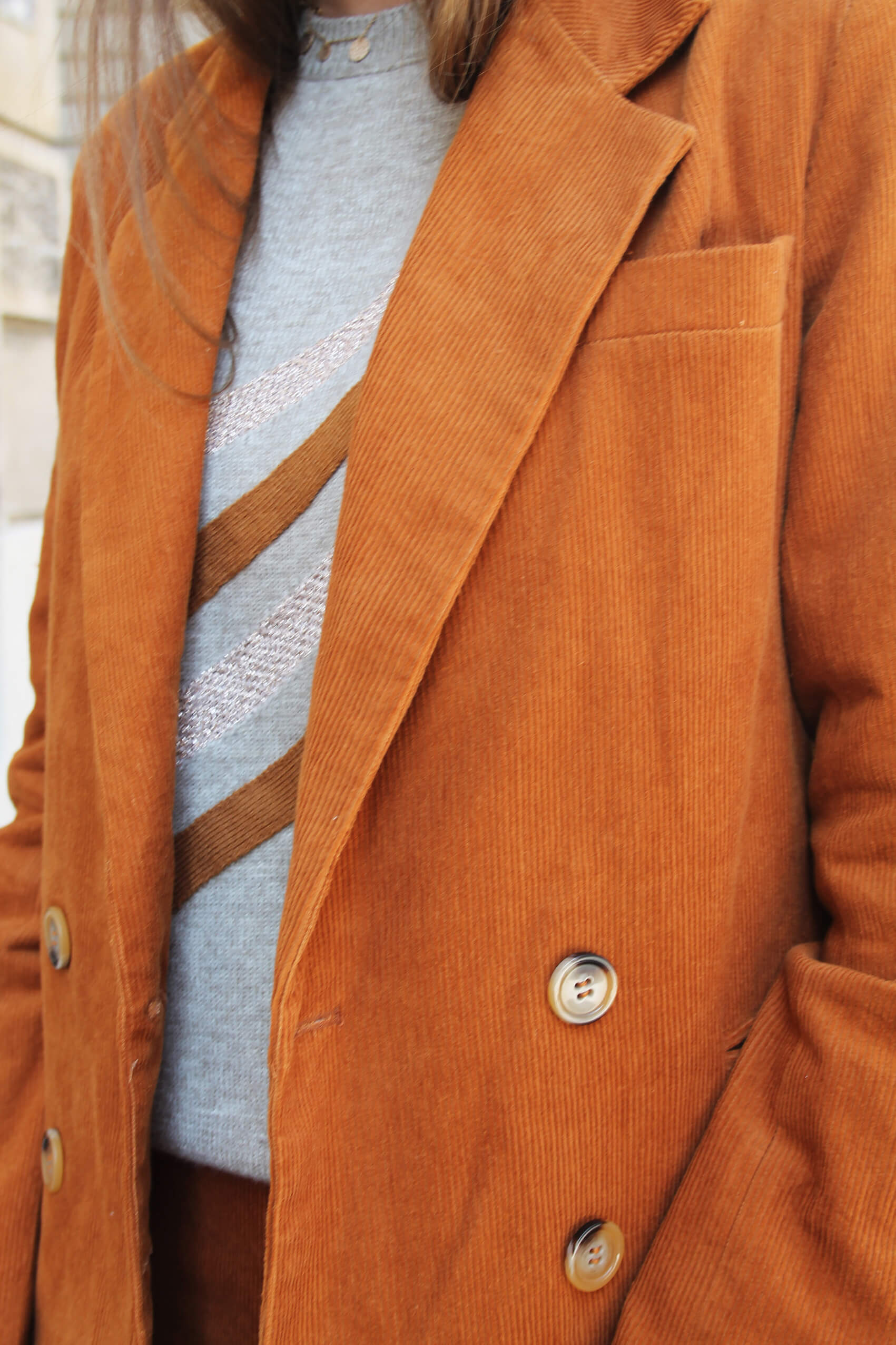 Un blazer en velours à la belle couleur camel qui vient réhausser nos tenues d’une touche vintage cette rentrée… Notre veste Yoko se veut rétro et un brin androgyne. Pour un total look, on se fait plaisir en l’associant au pantalon John !