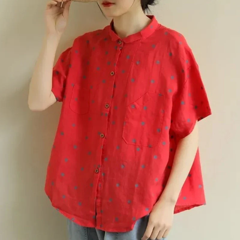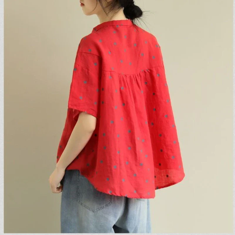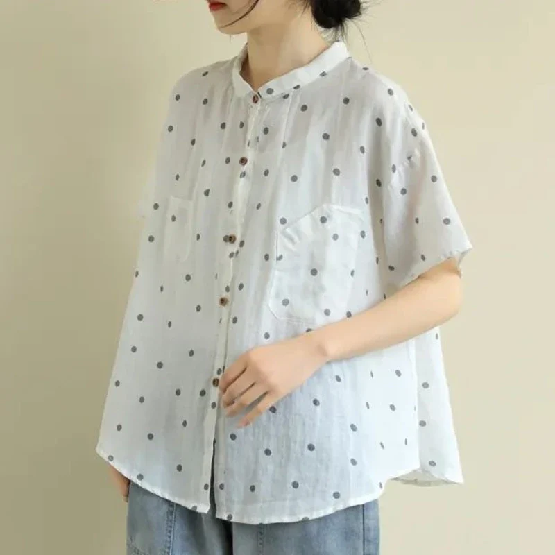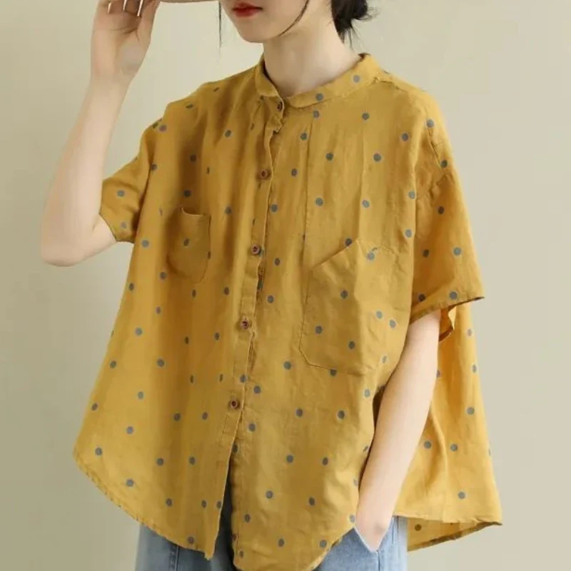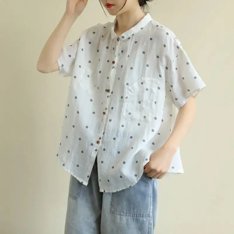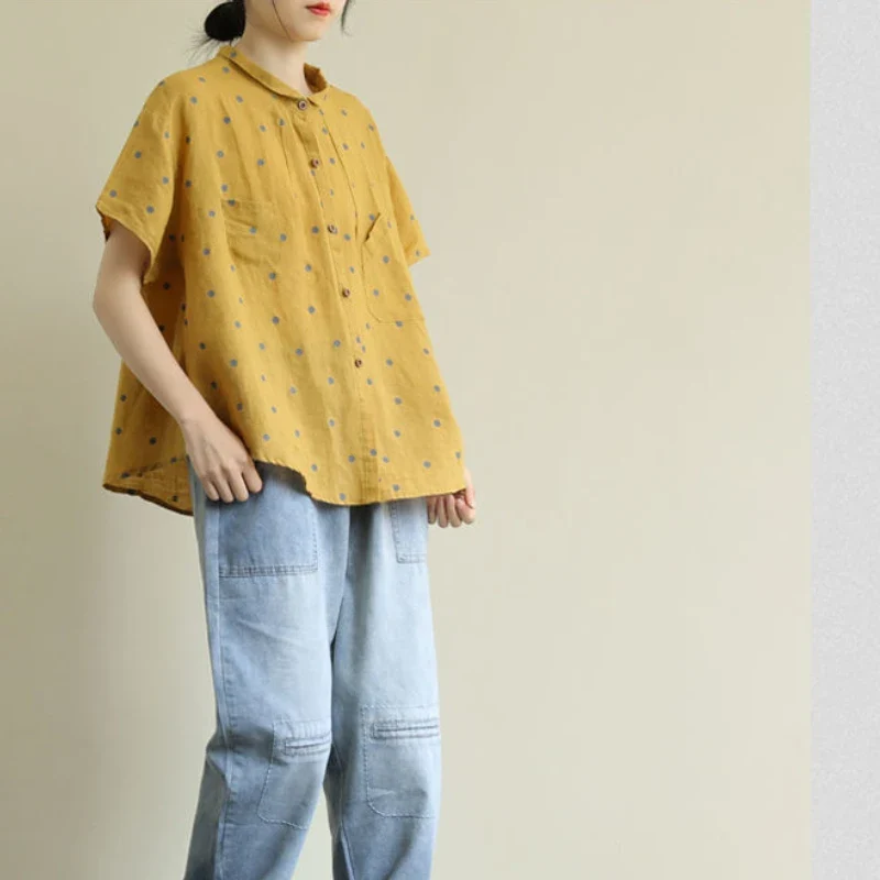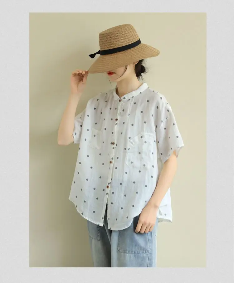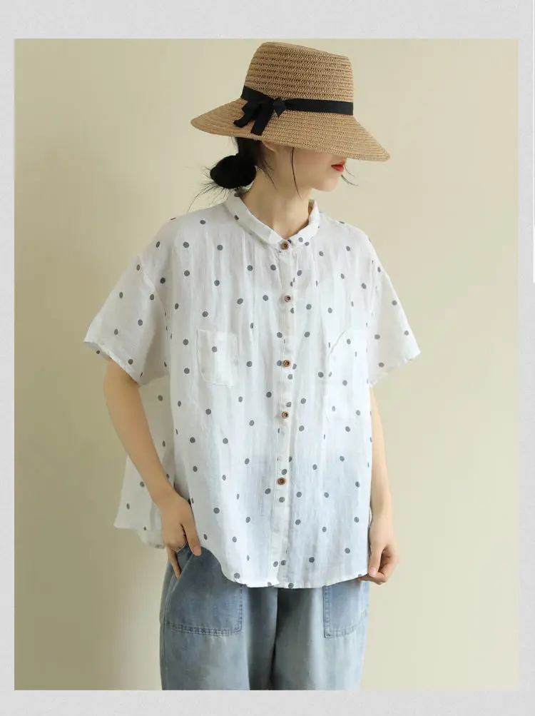 La blouse femme à pois avec poche imprimée est l’incarnation parfaite du style casual chic. Son col rond apporte une touche d’élégance discrète à votre tenue, tandis que son design à pois lui confère une allure tendance et intemporelle. Idéale pour un look décontracté sophistiqué au quotidien.