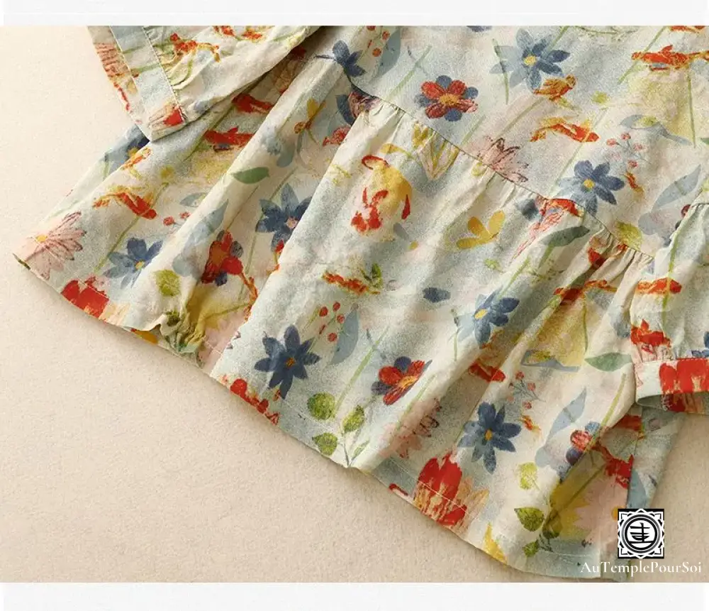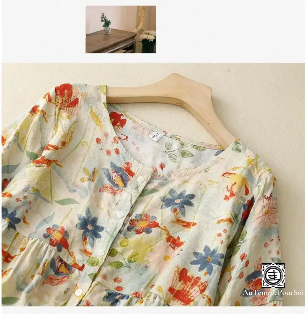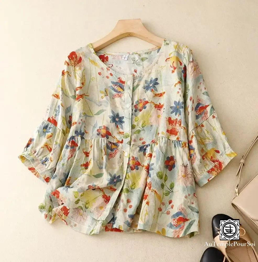Laissez-vous séduire par cette blouse haut de gamme à imprimé floral, alliant élégance et légèreté. Son tissu fluide et aérien offre un confort optimal, tandis que ses manches trois-quarts légèrement bouffantes et sa coupe ample créent une silhouette à la fois chic et décontractée. Parfaite pour une tenue printanière raffinée, cette blouse apporte une touche bohème et féminine à votre garde-robe.