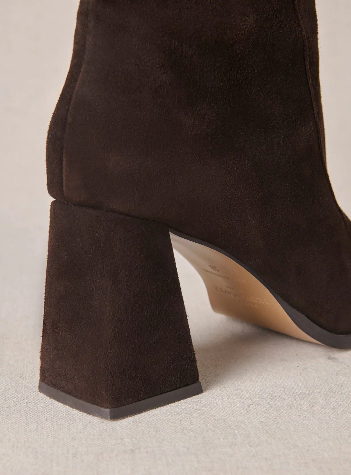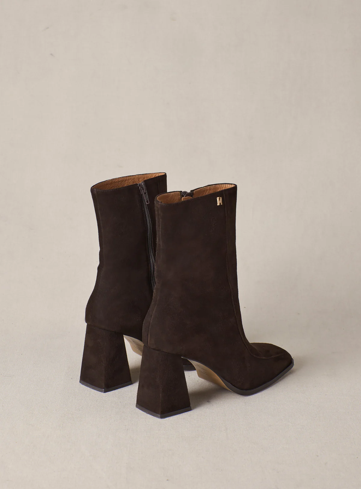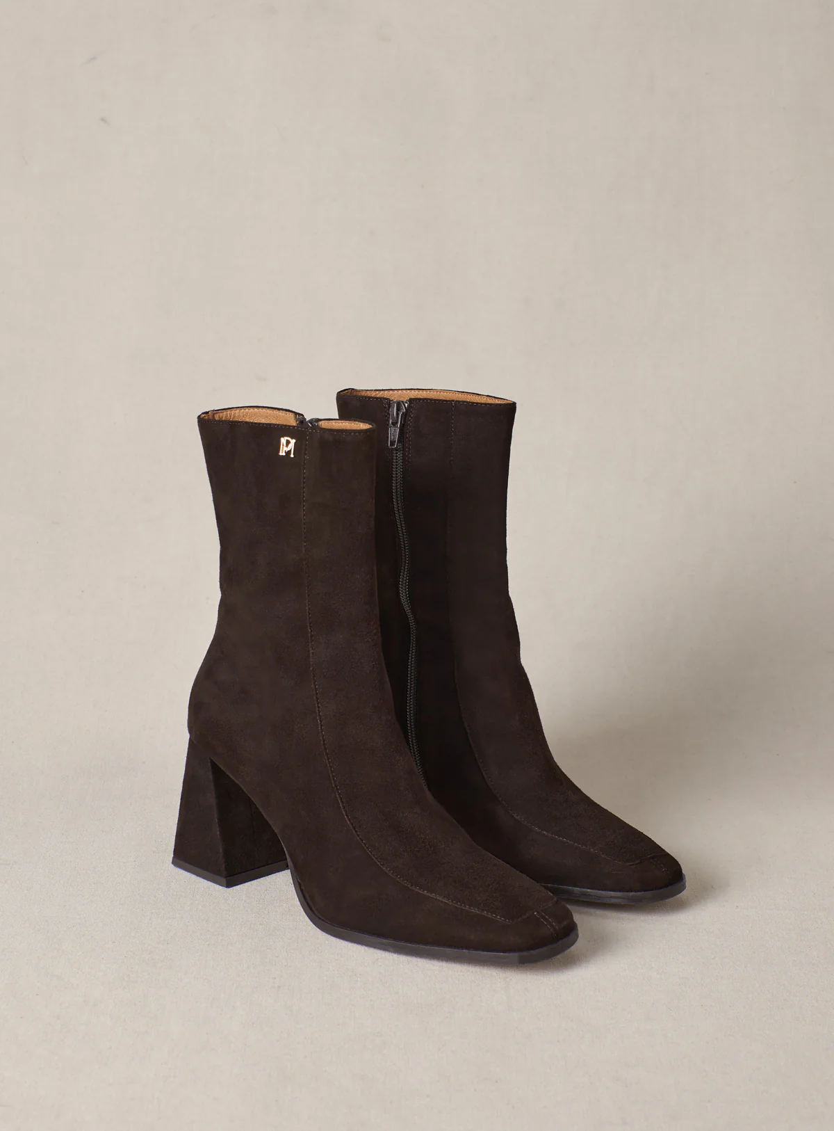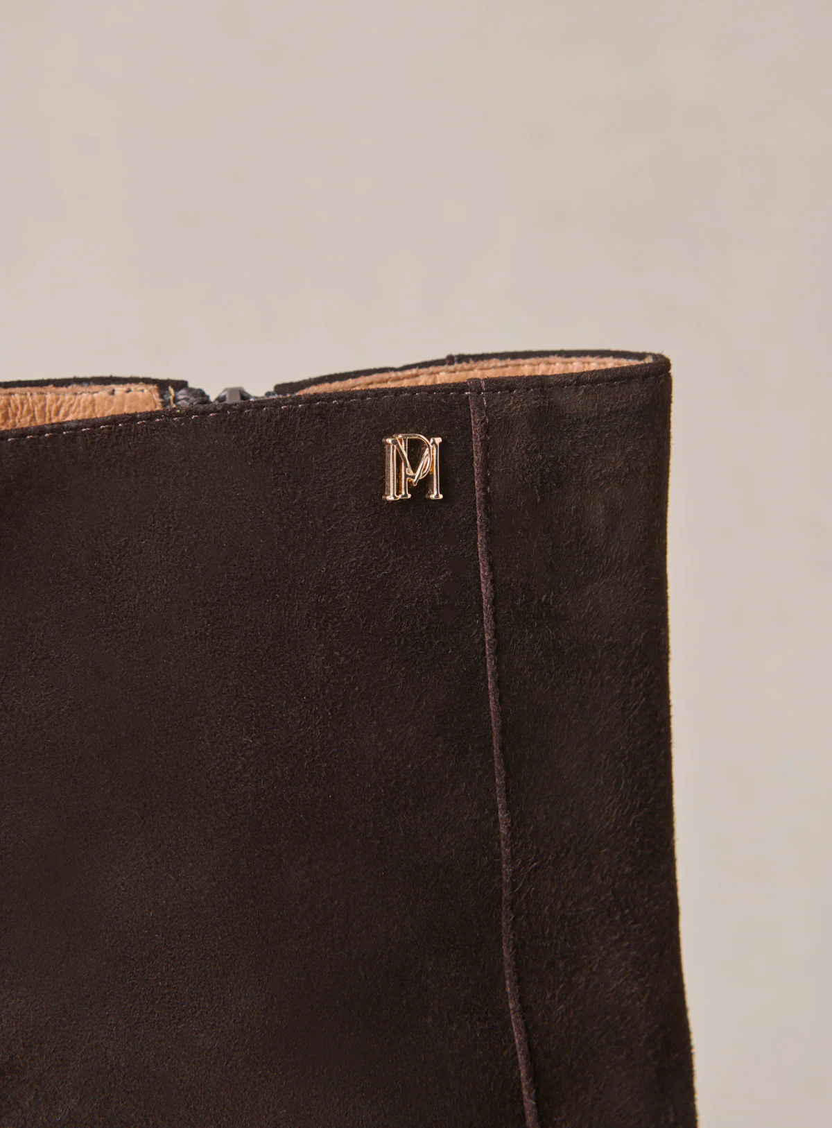 Pourquoi nous l’aimons : Féminines et intemporelles, ces bottines en suède chocolat allient douceur et élégance. Leur talon de 7,5 cm élance la silhouette avec justesse, tandis que leur ligne épurée et leur bout carré leur donnent une allure raffinée, facile à porter au quotidien. Un classique chic à avoir dans son vestiaire.
