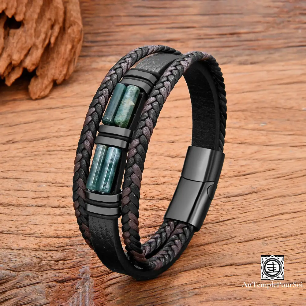 Bracelet en Cuir et Pierre Naturelle | Élégance et Énergie Protectrice