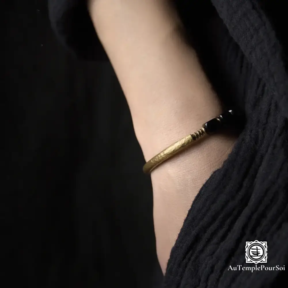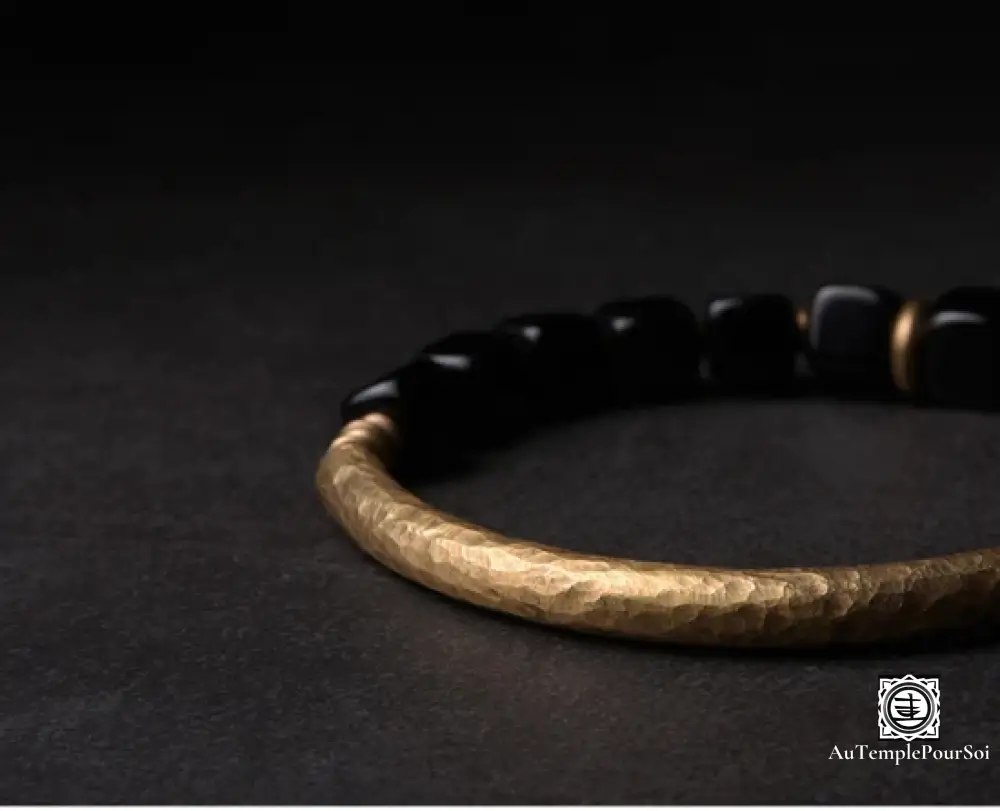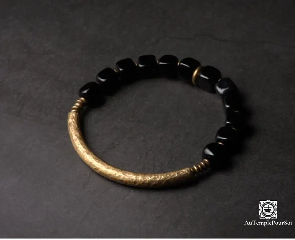 Ce bracelet allie élégamment le cuivre et le laiton pour un design unique et raffiné. Léger et ajustable, il s’adapte parfaitement à tous les poignets. Les pierres naturelles ajoutent une touche d’authenticité et de bien-être à ce bijou d’exception.