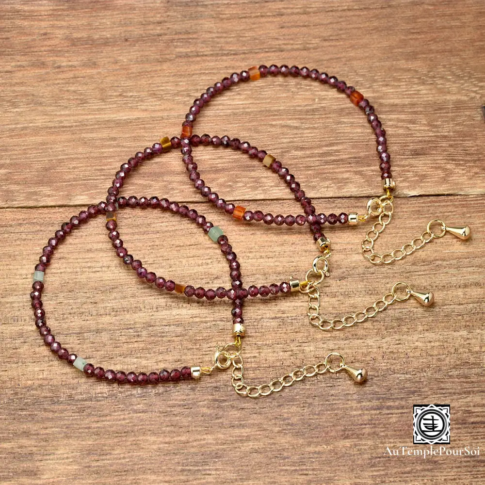 Les perles facettées de 3 mm captent la lumière pour un éclat subtil, tandis que le grenat symbolise la passion et la vitalité, et la cornaline favorise la créativité et la confiance. Doté d’une chaîne ajustable, ce bijou est parfait pour un usage quotidien ou comme cadeau unique et significatif pour une femme élégante.