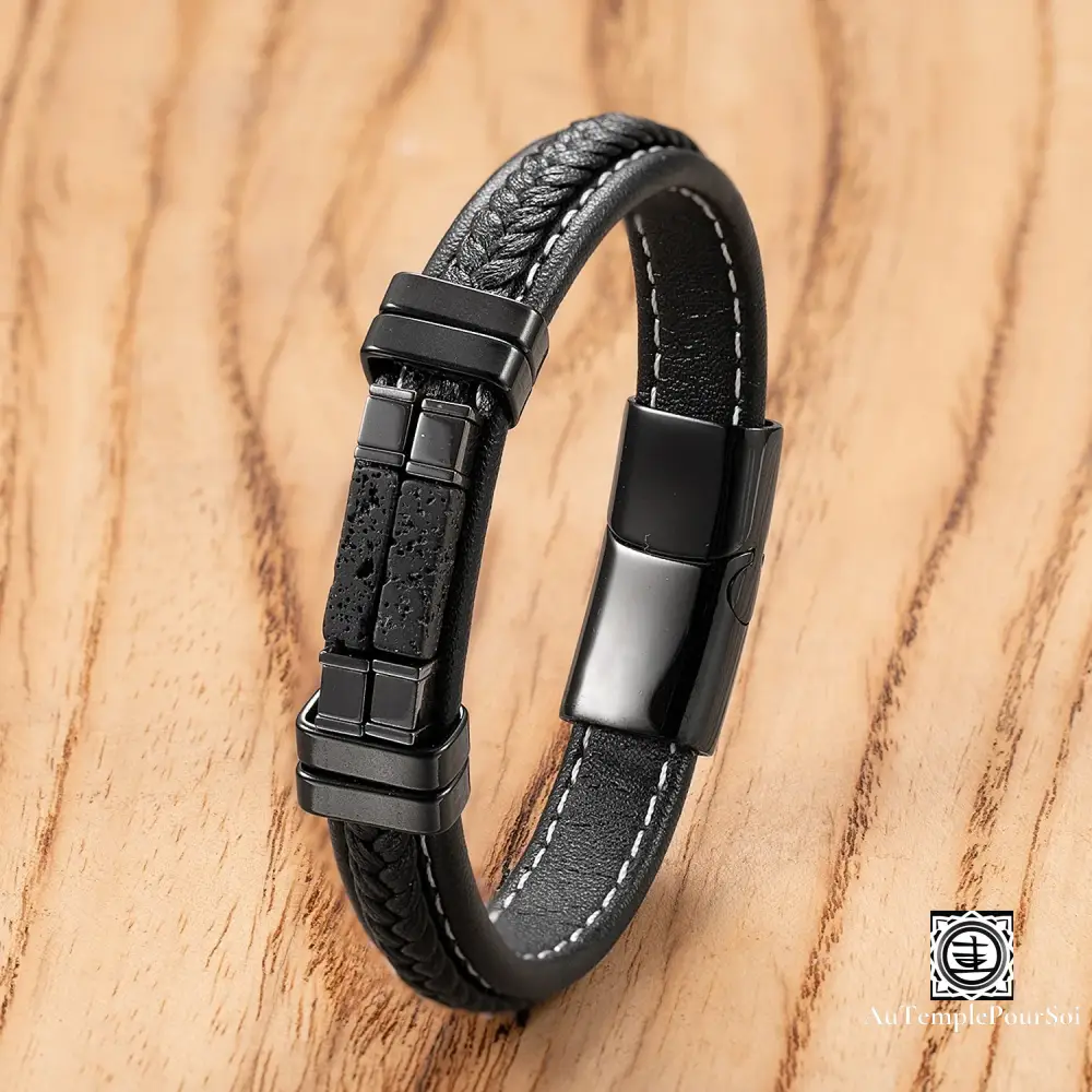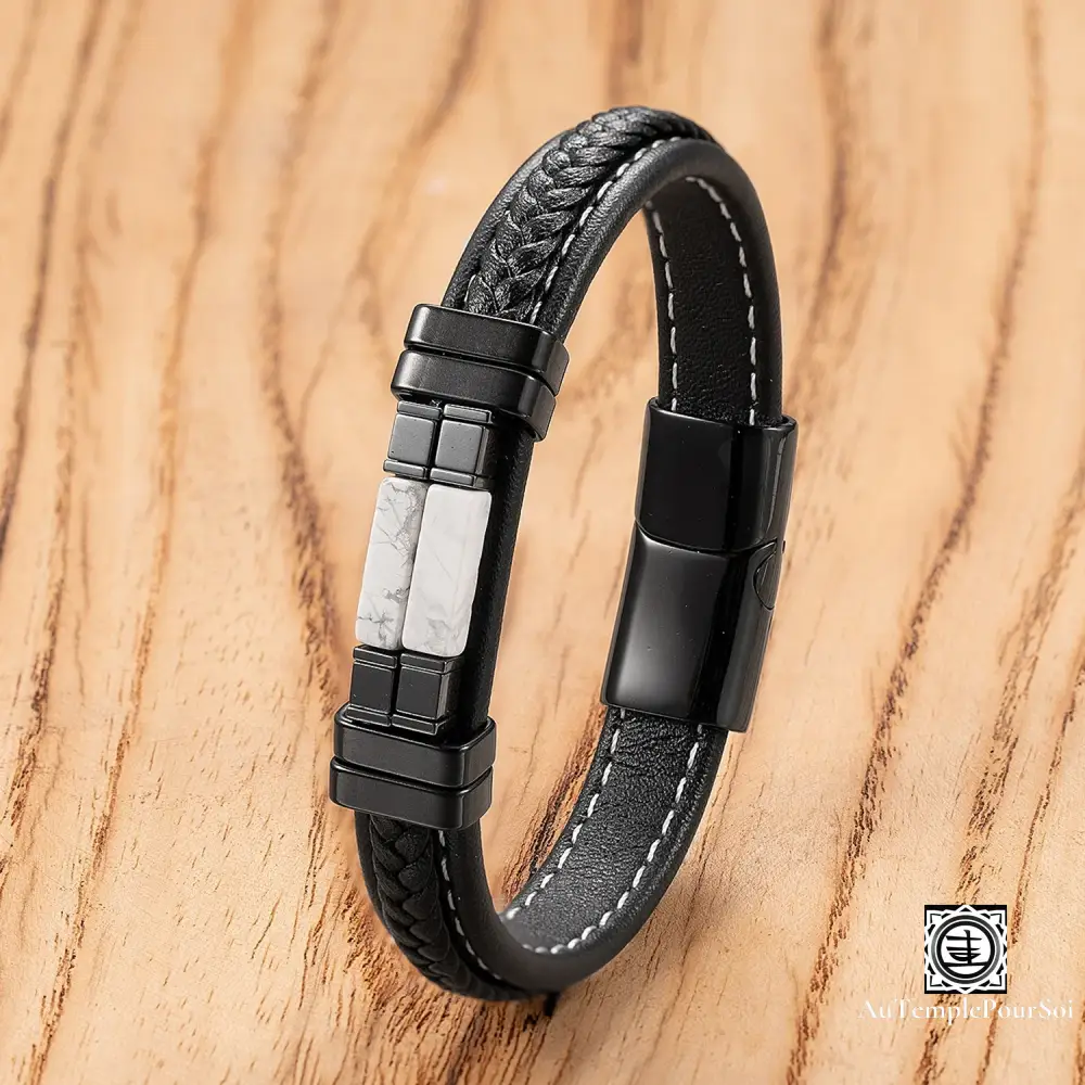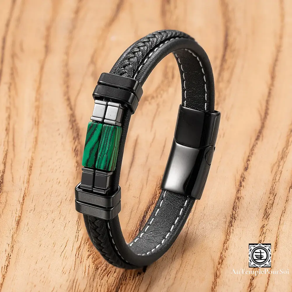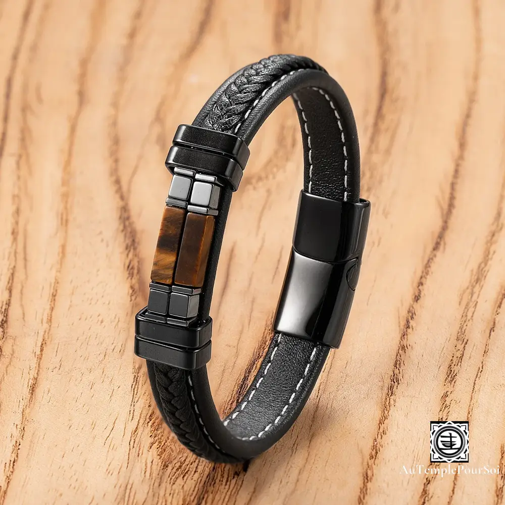 Bracelet Homme en Cuir et Pierre Naturelle | Élégance Vintage et Énergie Bienfaisante