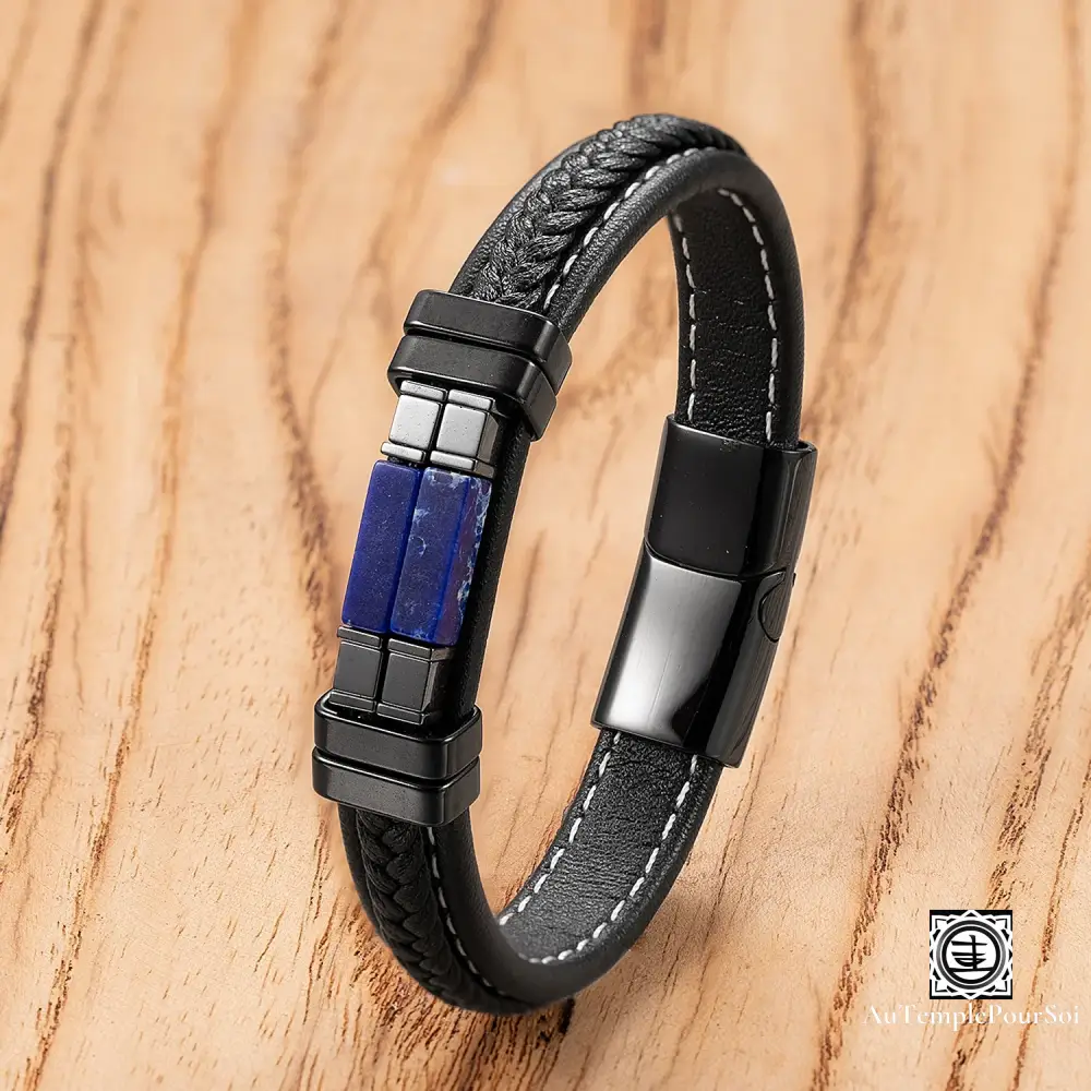 Apportez une touche d’élégance intemporelle avec ce bracelet en cuir tressé orné d’une pierre naturelle au choix (lapis-lazuli, œil de tigre, hématite, turquoise, etc.).