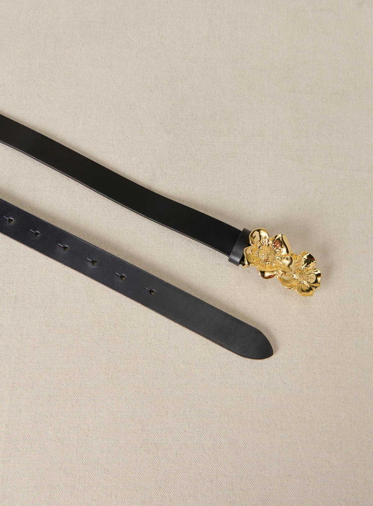 Pourquoi nous l’aimons : Cette ceinture fine est parfaite pour cintrer vos tenues. Son détail doré et floral ajoute une touche de lumière à votre look du jour.