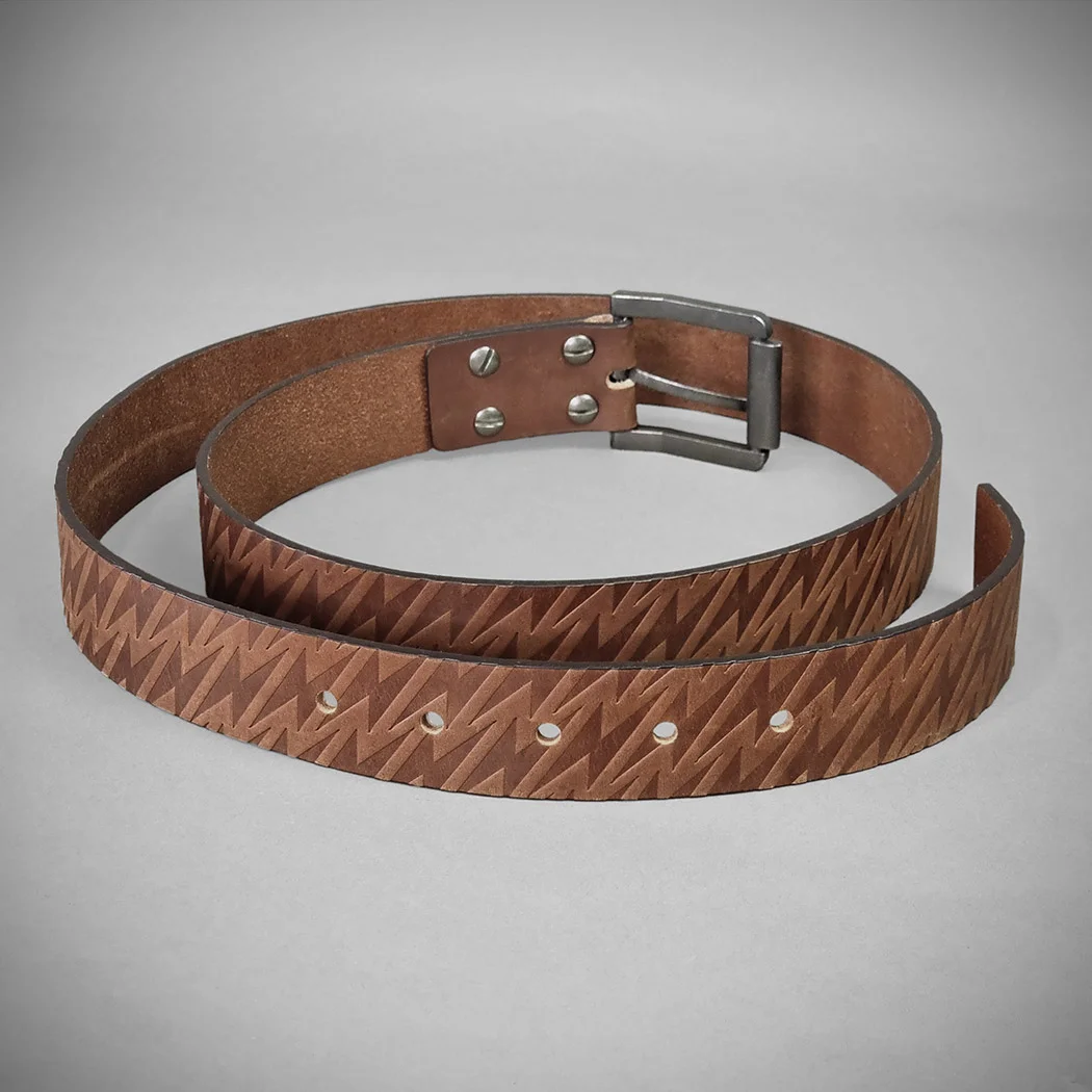 Ceinture en cuir véritable avec boucle en métal stylée, pour un look électrique avec ses éclairs engravés !
