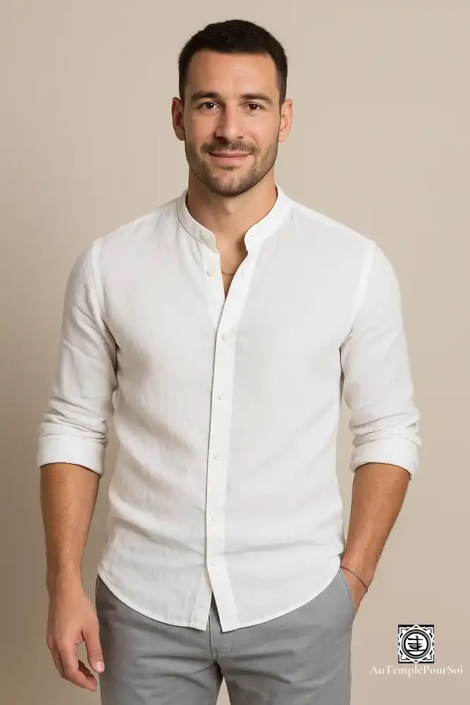 Choisissez votre teinte favorite et incarnez l’élégance décontractée avec notre collection de chemises en lin à col mao.