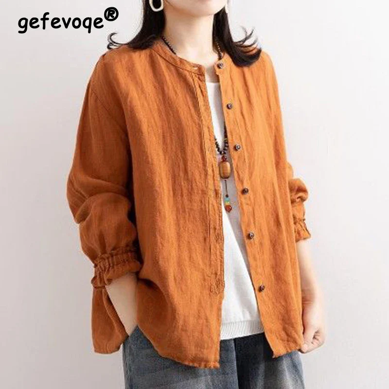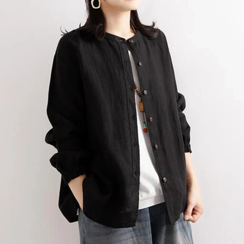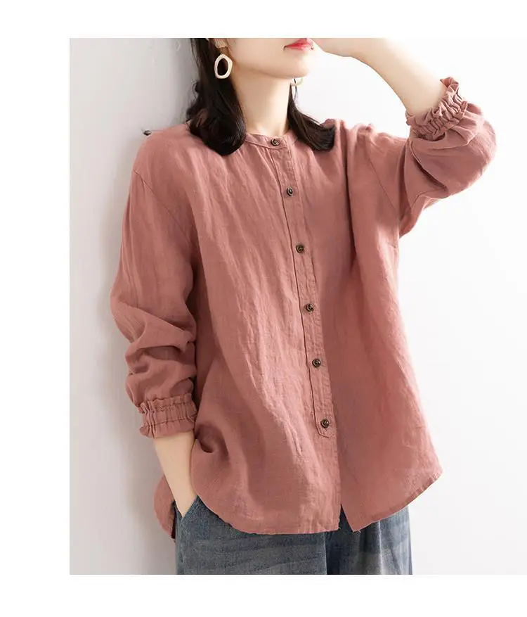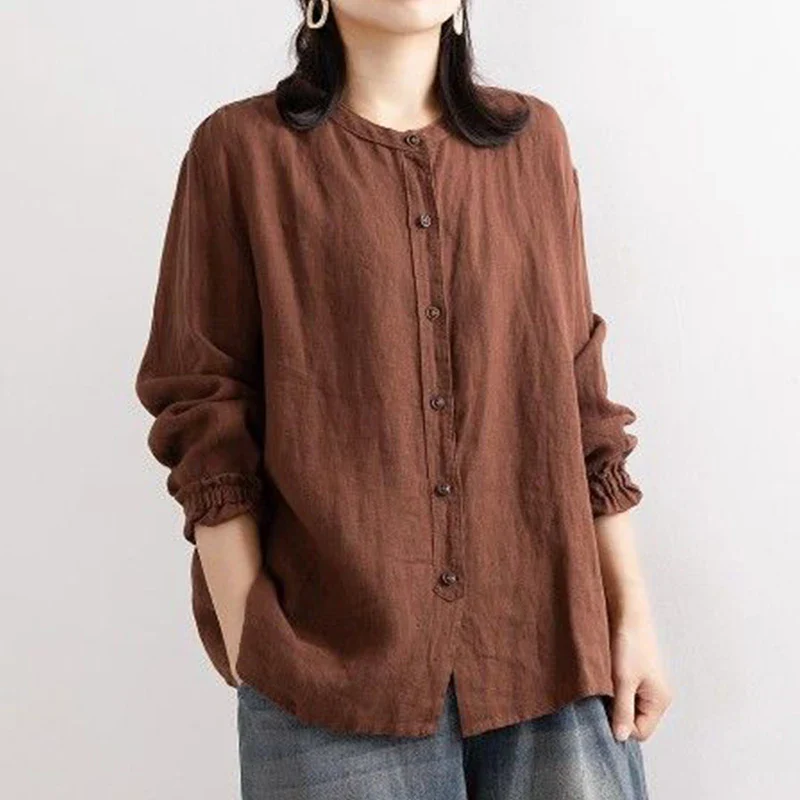 Découvrez notre chemise femme en coton et lin, parfaite alliance entre élégance vintage et confort contemporain. Ses manches longues et son col rond apportent une touche intemporelle à votre tenue.
