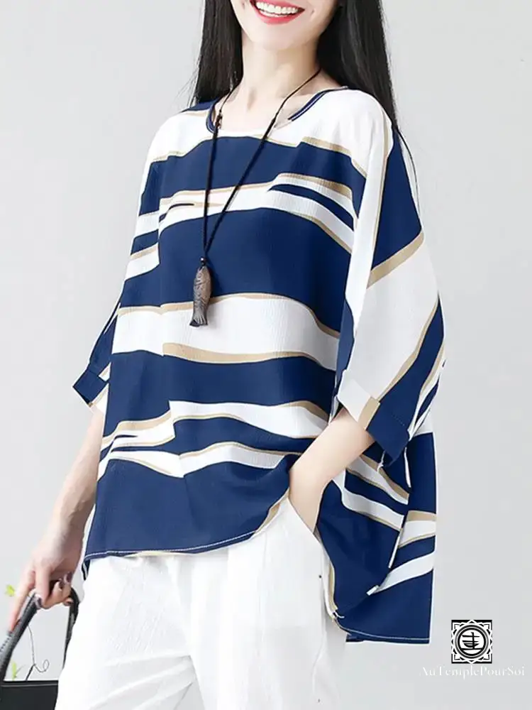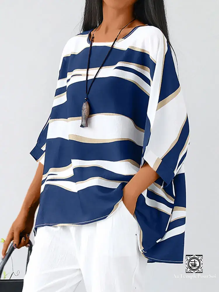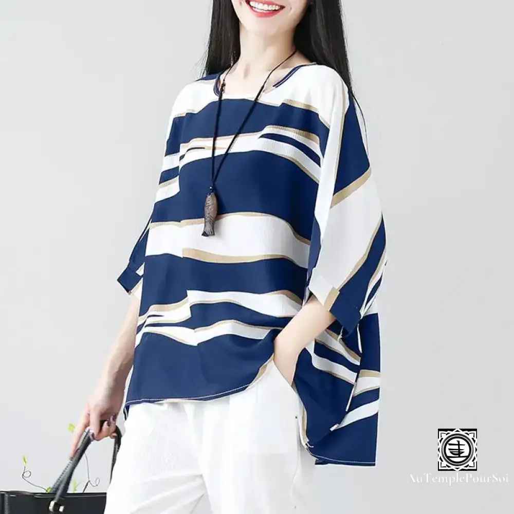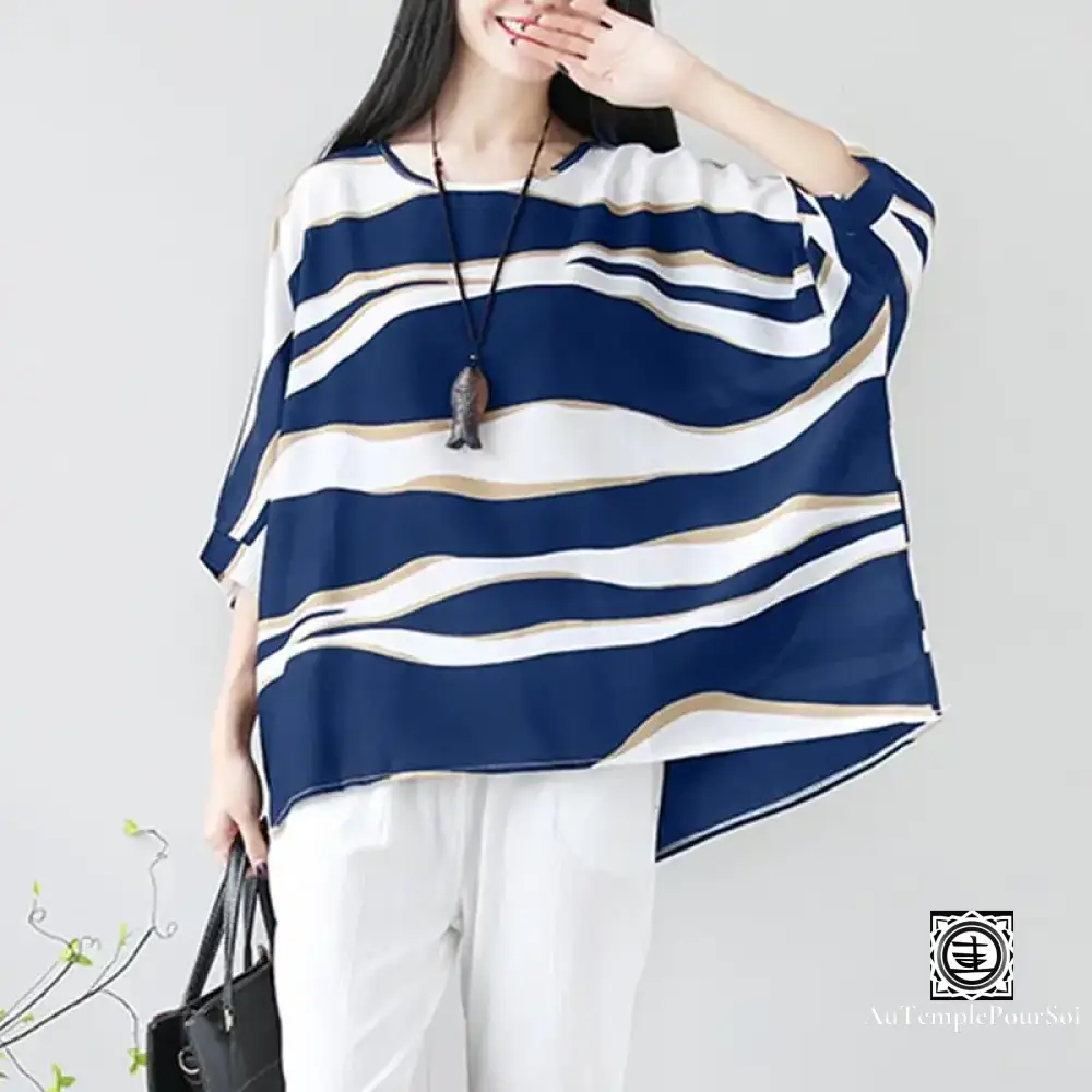 Offrez-vous l’élégance d’un chemisier haut de gamme au design fluide et raffiné. Conçu pour les femmes à la recherche d’un style chic et confortable, ce modèle ample se distingue par son imprimé graphique bleu et doré, idéal pour sublimer votre silhouette avec modernité. Sa coupe oversize apporte une liberté de mouvement inégalée, parfaite pour un look sophistiqué et décontracté à la fois.