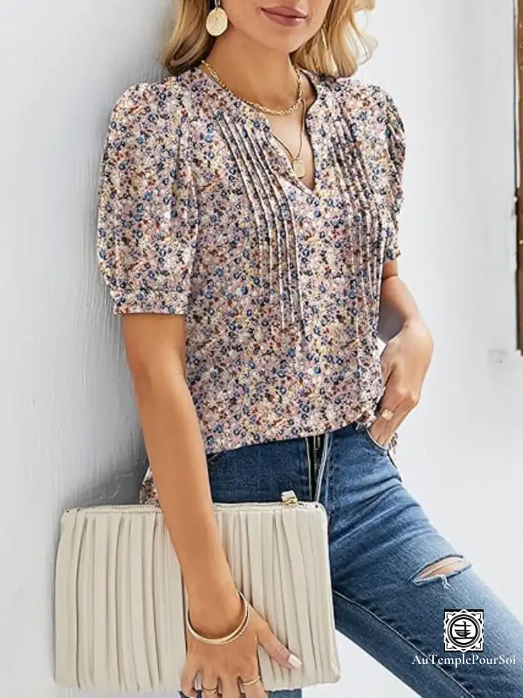Craquez pour ce superbe chemisier haut de gamme à imprimé fleuri, une pièce incontournable pour une allure féminine et raffinée. Son tissu léger et fluide assure un confort optimal tout en mettant en valeur votre silhouette. Avec ses manches bouffantes et son col délicatement plissé, ce chemisier allie romantisme et sophistication pour un style bohème chic irrésistible.