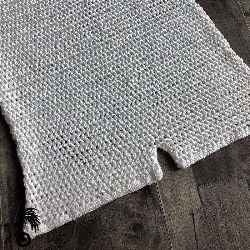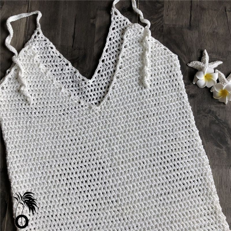 - Forme : Shorty au crochet, fines bretelles, décolleté