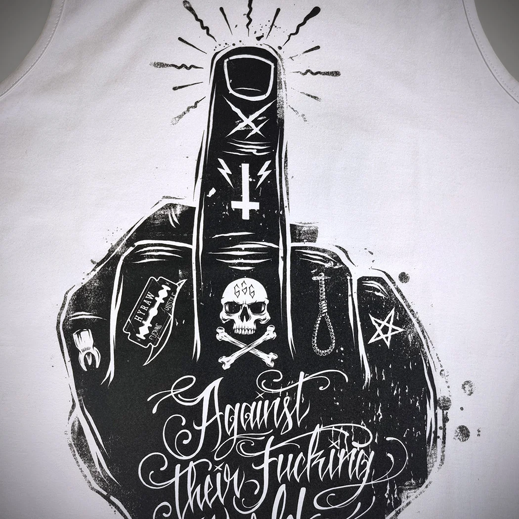 Débardeur classique blanc avec le visuel FUCK sur le devant.
