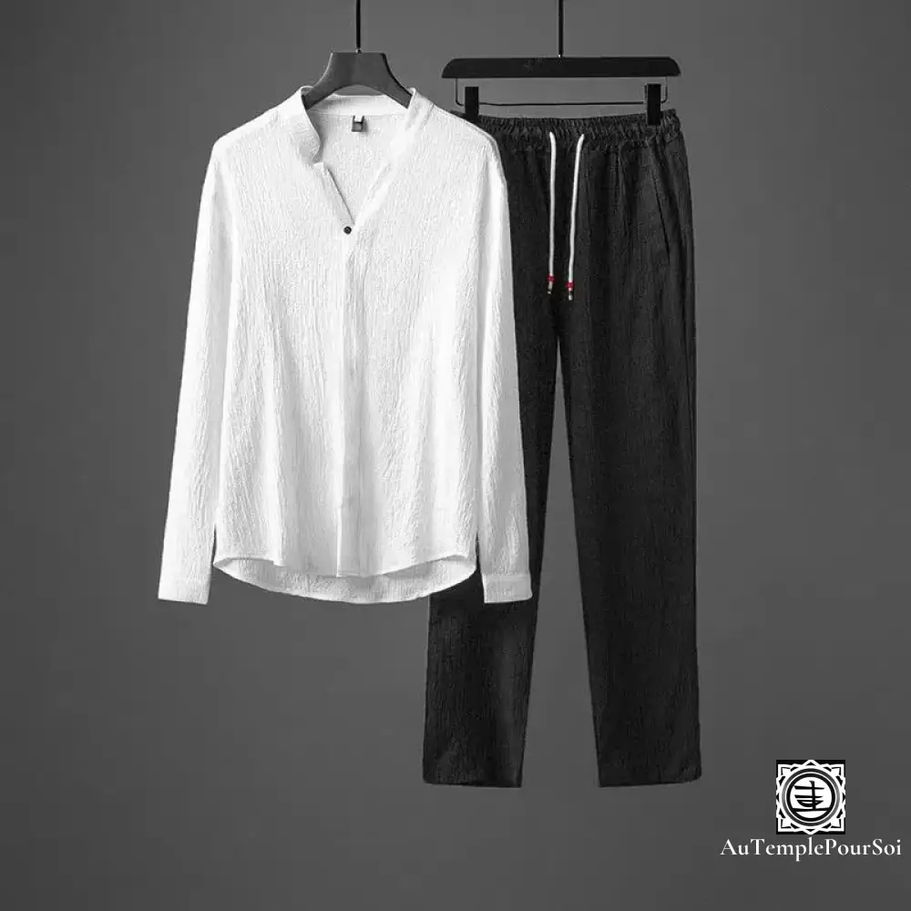 « Harmonie Urbaine » puise dans l’esthétique zen pour apporter une touche de tranquillité dans l’effervescence urbaine. Cet ensemble est un choix judicieux pour ceux qui aspirent à un look soigné, sans renoncer à la sérénité et à la simplicité.