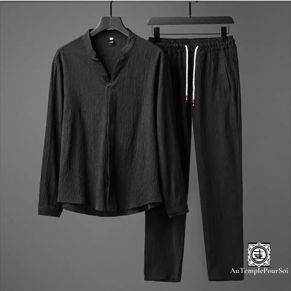 Avec son haut à manches longues et son col élégamment dessiné, ainsi que son pantalon assorti, cet ensemble offre une allure chic et contemporaine. Le choix parfait pour ceux qui cherchent à marier fonctionnalité et style dans leurs tenues de tous les jours.