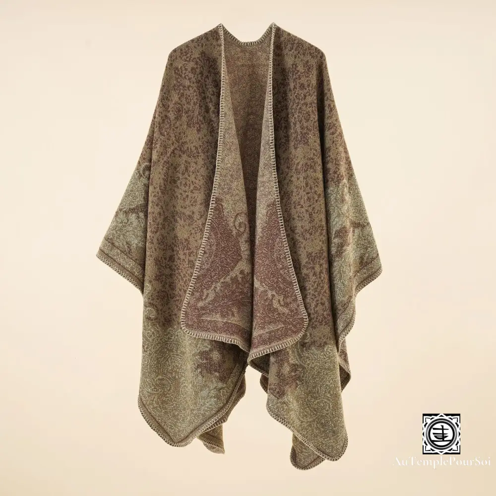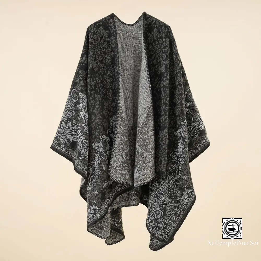 Sa coupe décontractée et son style enveloppant en font le compagnon idéal pour une superposition aisée, offrant polyvalence et aisance, que ce soit pour une sortie décontractée ou un événement plus formel. Ce poncho n’est pas seulement un vêtement, c’est un véritable accessoire de mode qui promet de transformer n’importe quel ensemble simple en une tenue remarquable.