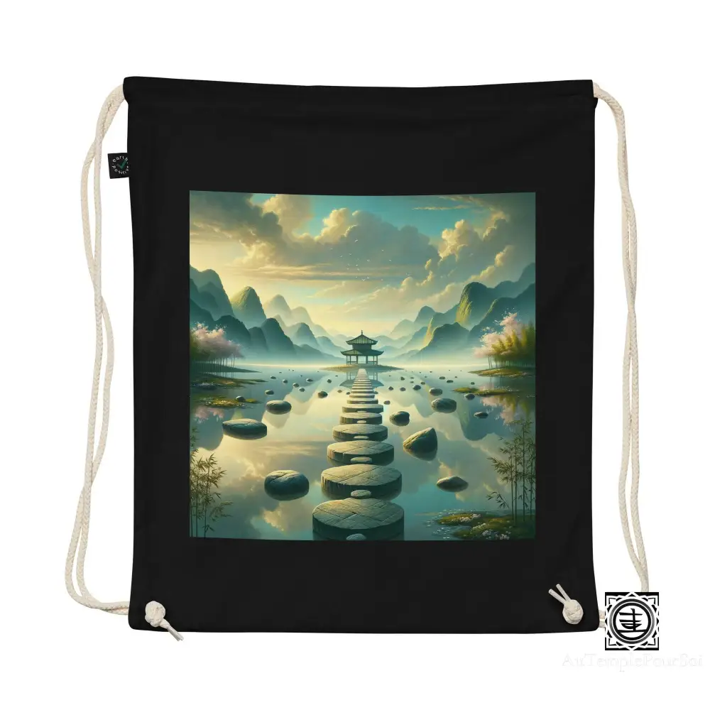 Découvrez l’élégance fonctionnelle avec notre sac Au Temple Pour Soi à cordon en coton biologique « Esprit Serein ».
