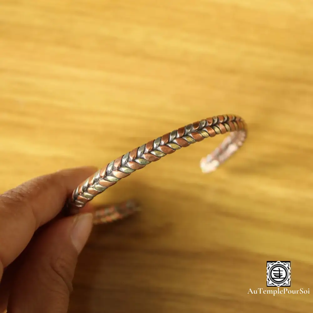 Embrassez l’éclat ancestral avec notre bracelet tibétain « Essence Tressée de Tibet », une pièce maîtresse de la collection premium, tressée à la main par des maîtres artisans. Le cuivre, vénéré pour sa conductivité énergétique, est travaillé avec une finesse inégalée pour créer un bijou qui transcende le temps et les tendances.