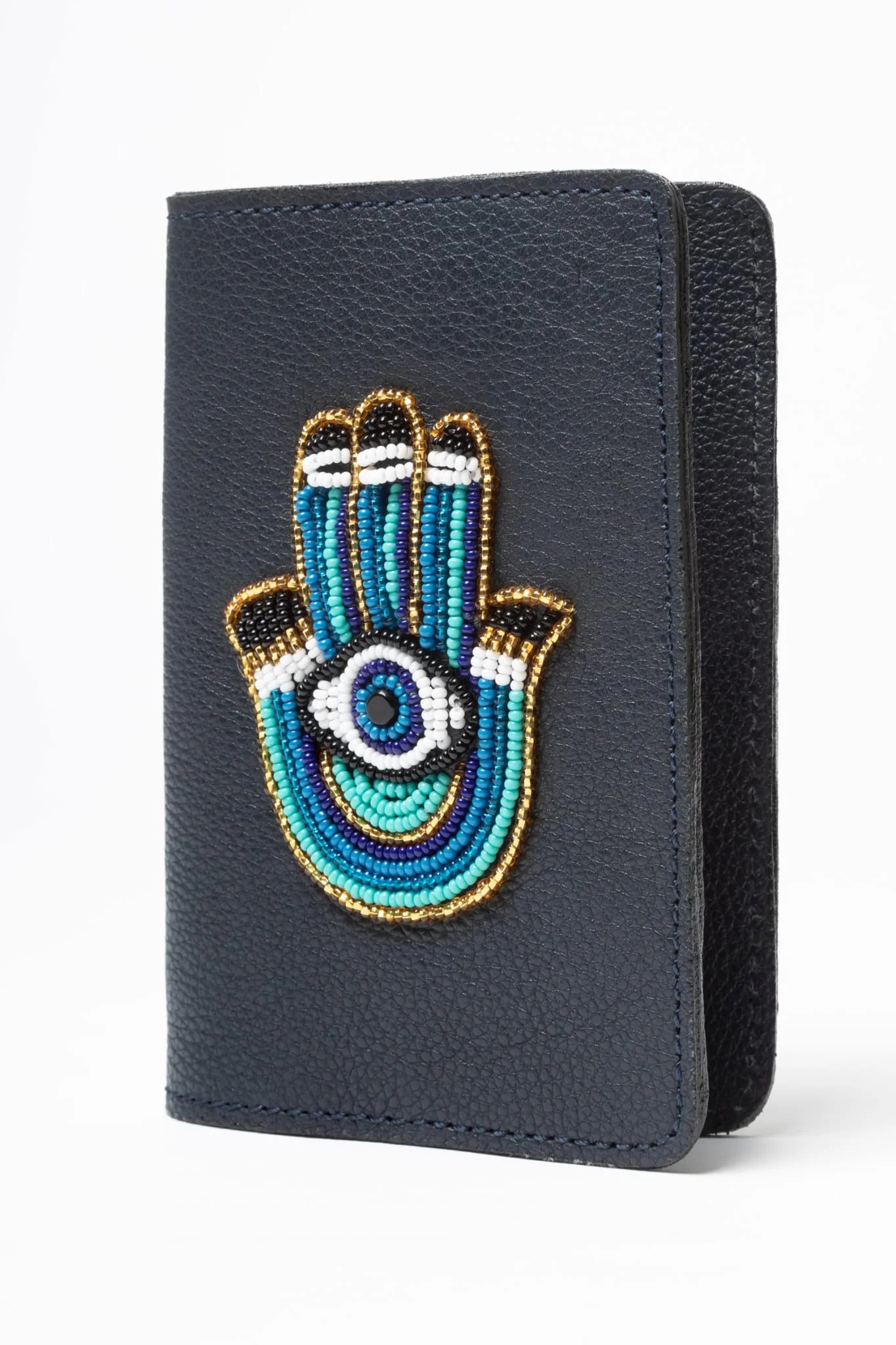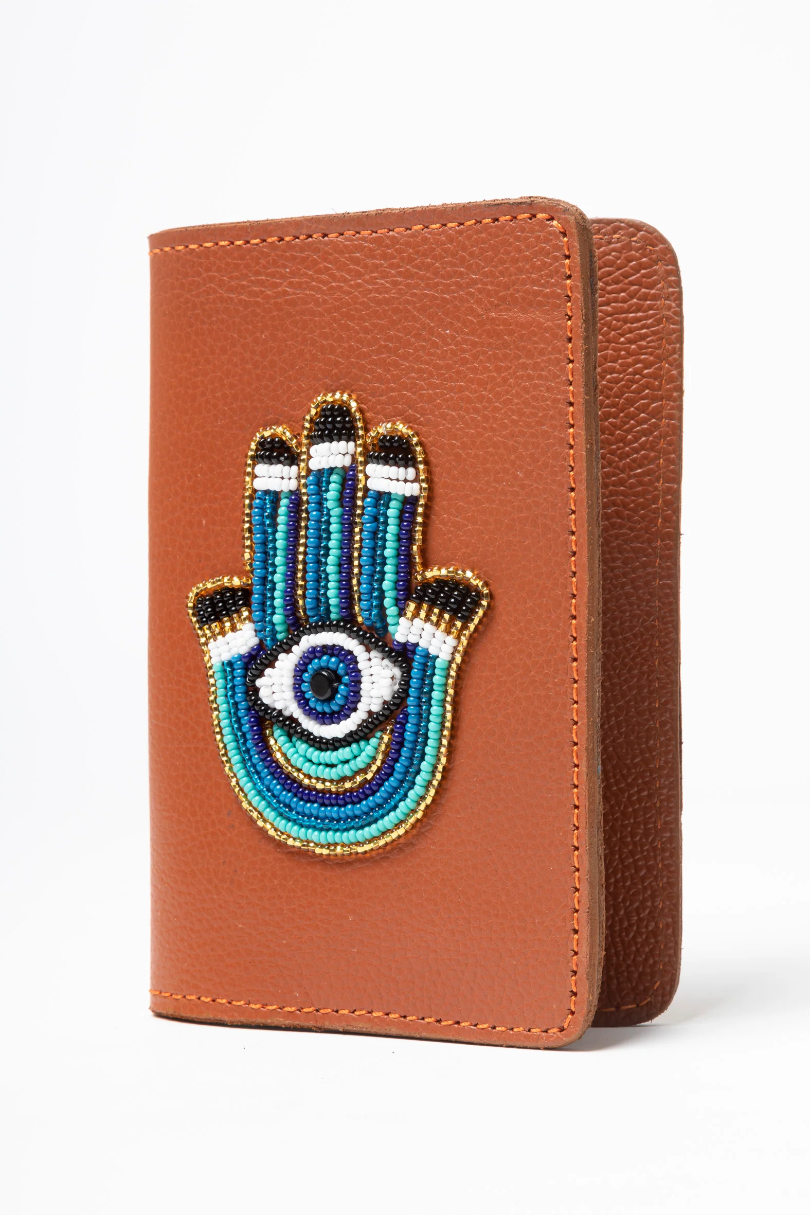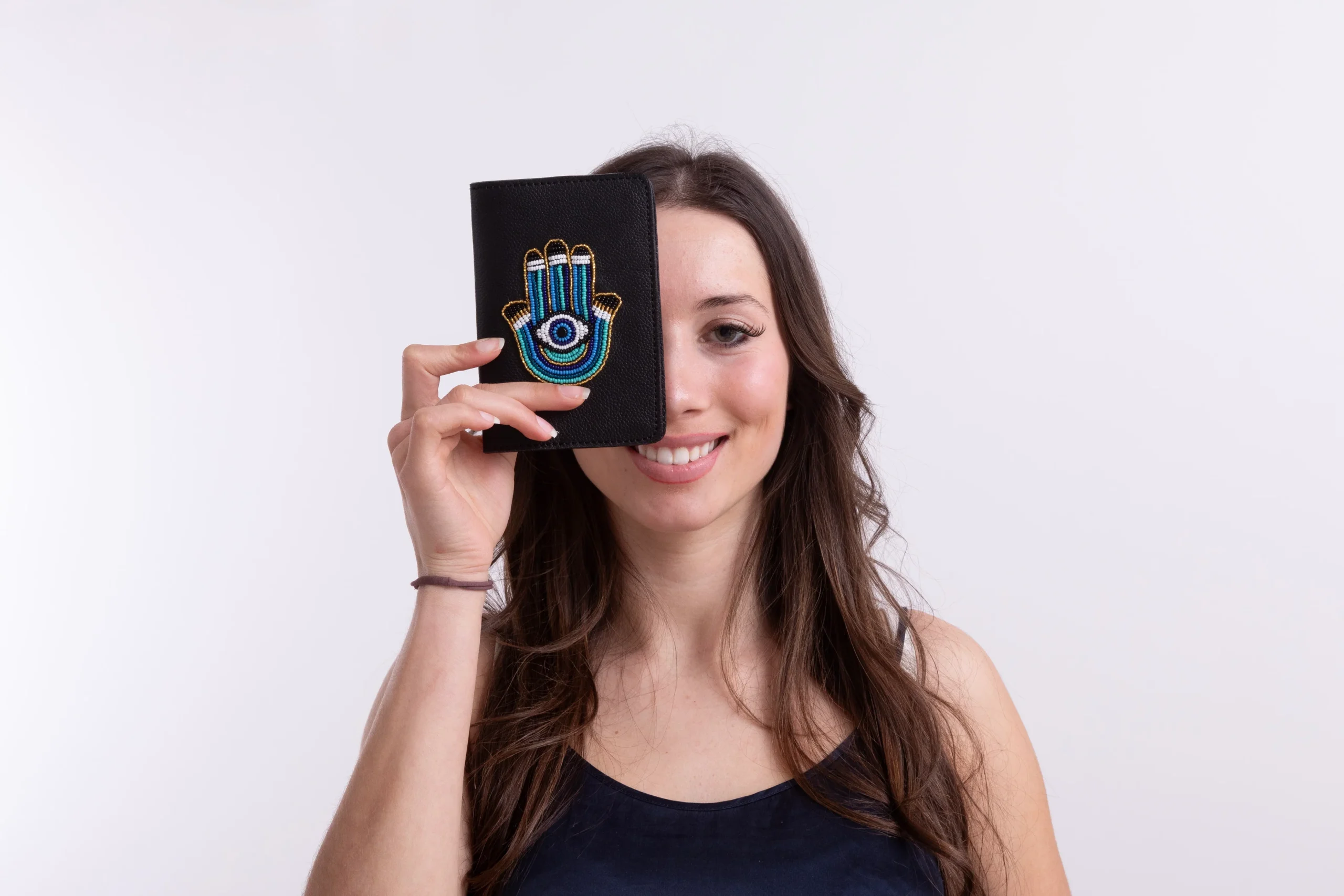 Préparez-vous à explorer le monde avec classe grâce à notre étui porte-passeport en cuir, conçu pour elle et lui. Confectionné à la main par des artisans talentueux du Kenya, cet accessoire allie élégance, fonctionnalité et savoir-faire traditionnel. La broderie en perles colorées de la couverture représente un œil porte-bonheur, un design symbolique qui deviendra un véritable talisman pour accompagner vos aventures.