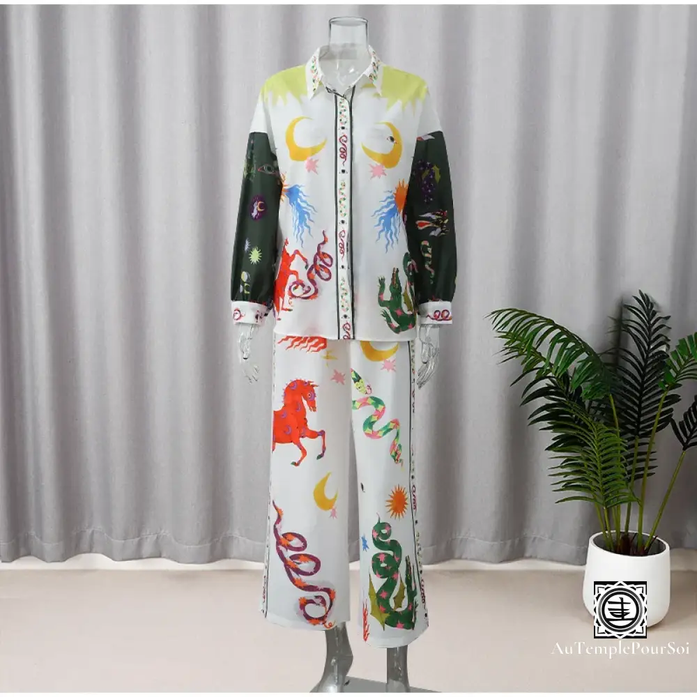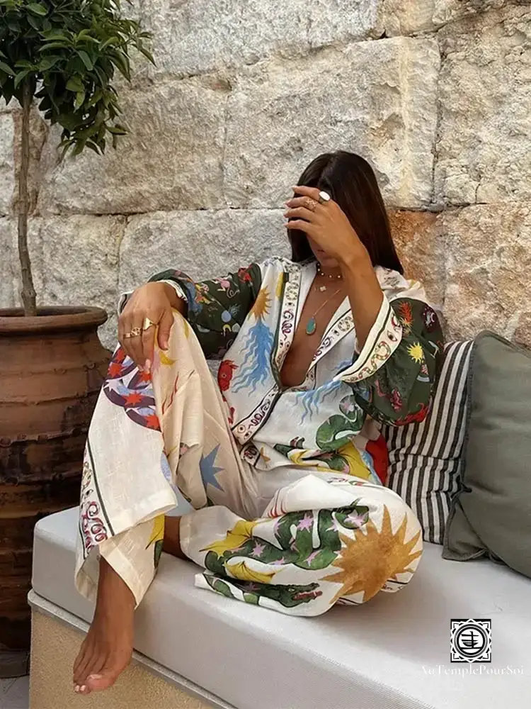 Adoptez un style unique et élégant avec l’Ensemble Décontracté Imprimé Pomesia chez Au Temple Pour Soi.