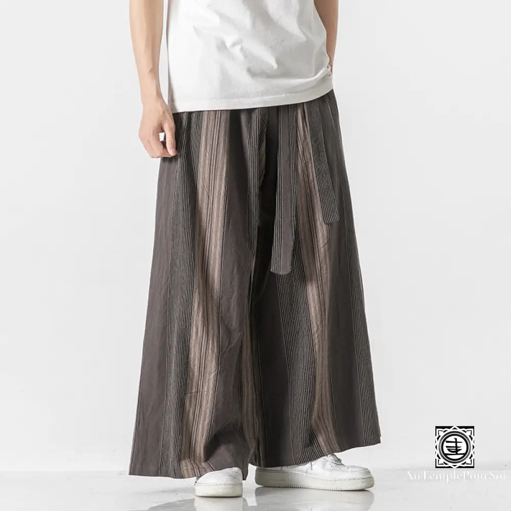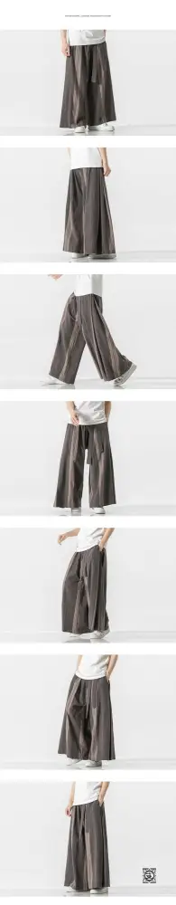 Sa fabrication de coton et de lin le rend très léger et doux, et il se distingue par son style chinois avec grand entrejambe et ses jambes plus larges. Idéal pour un look casual et confortable.