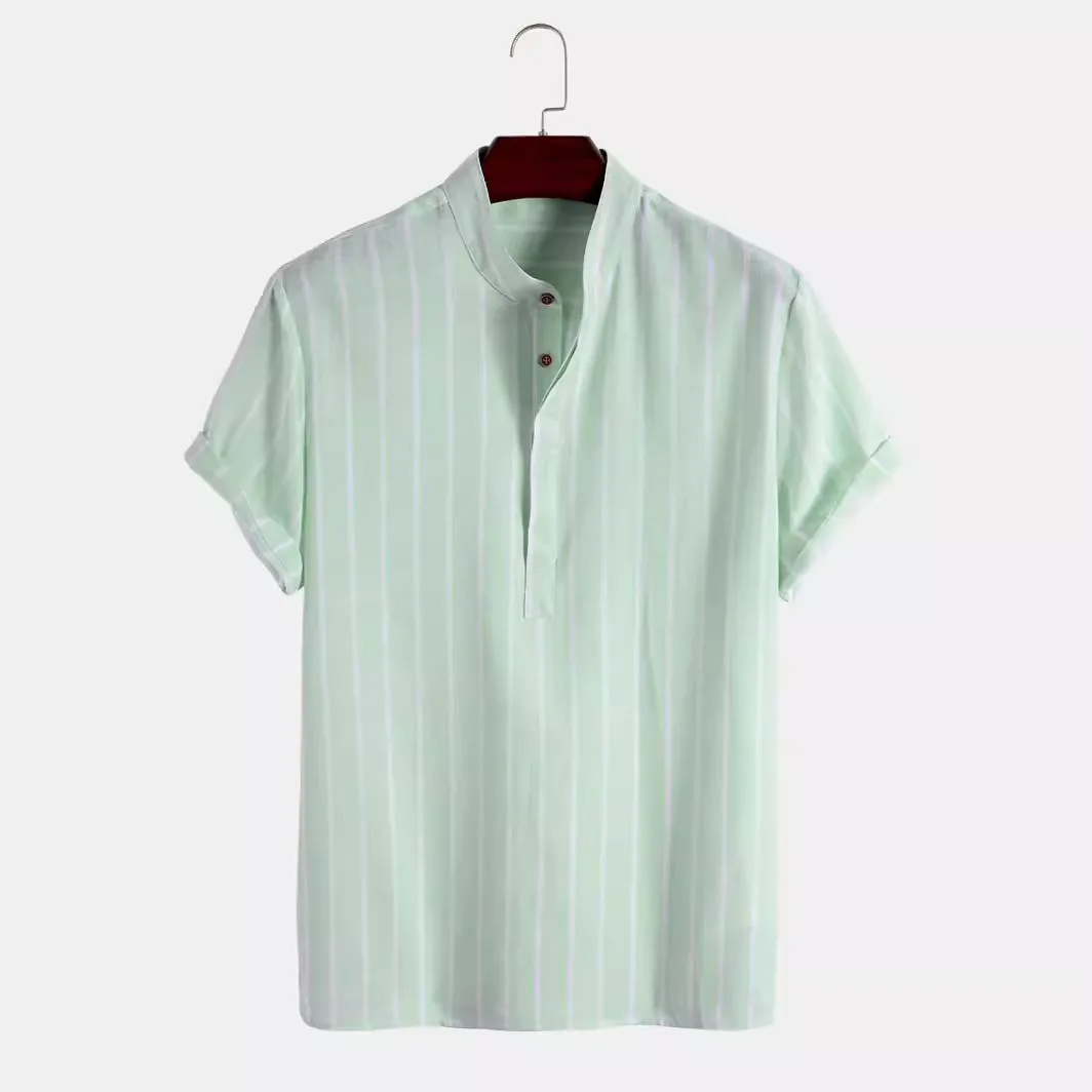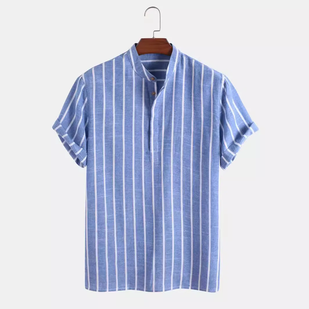 Soyez le premier à laisser votre avis sur “« Hayato » Chemise homme en coton et lin | Col Mao, manches courtes, rayures estivales”
