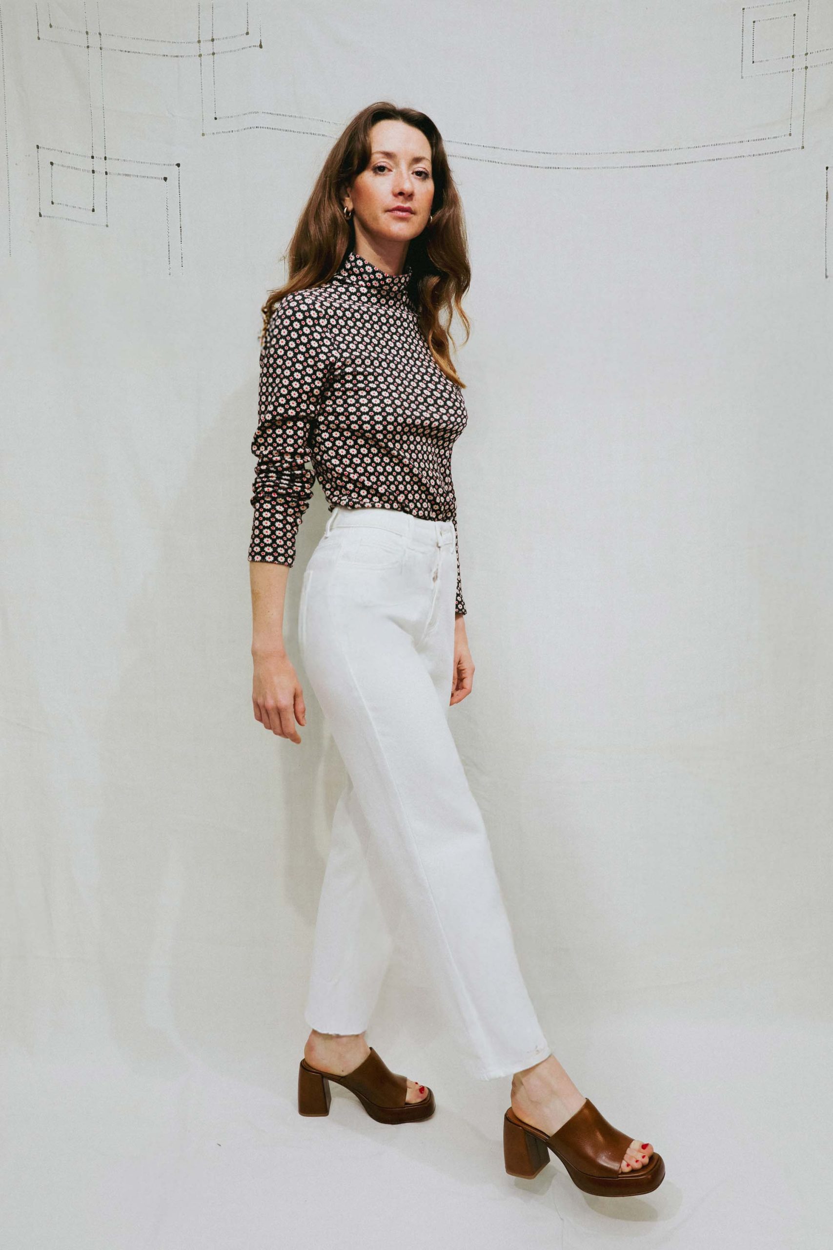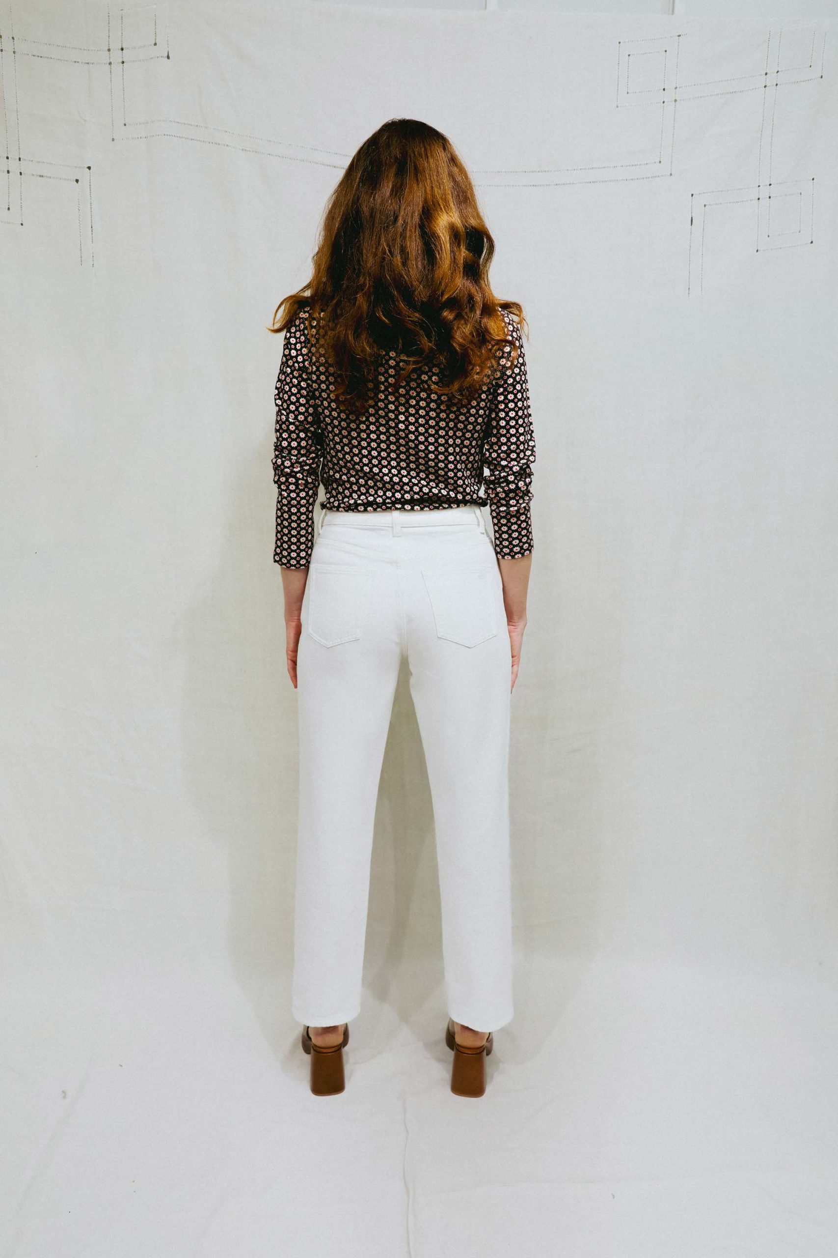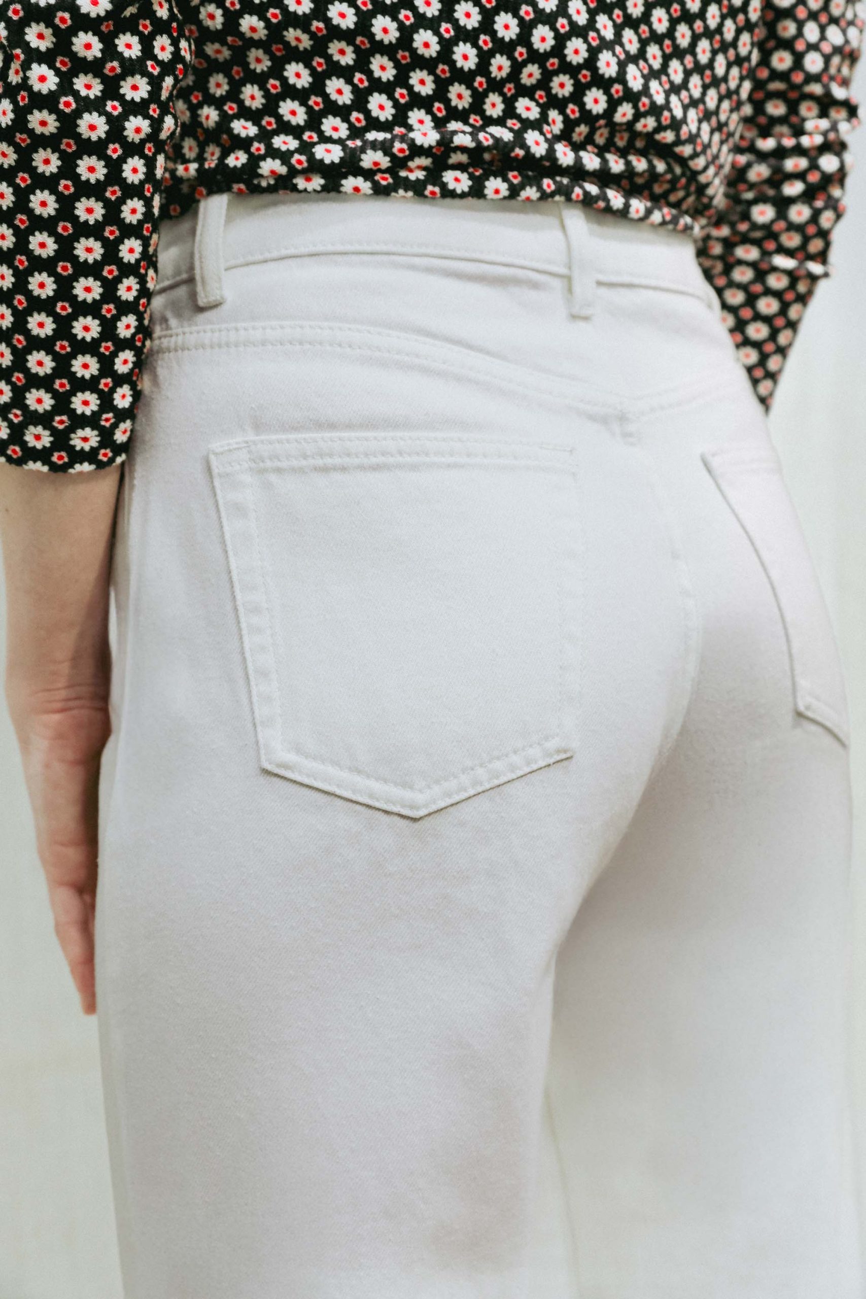 Un jean blanc à la coupe mom, pour un look à la fois rétro et moderne,