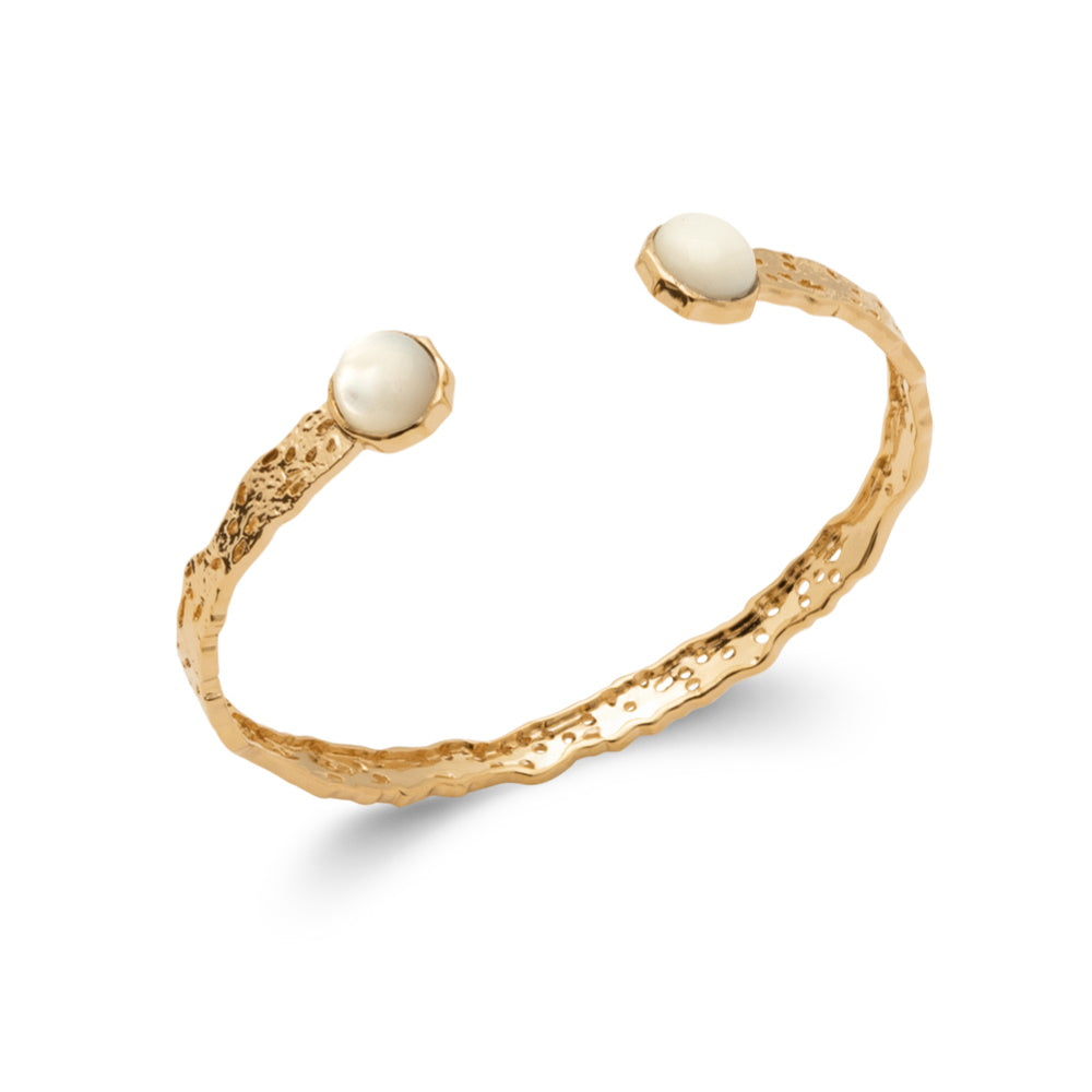 - Jonc en plaqué or 3 microns (or 18 carats) et en nacre (matière naturelle)
