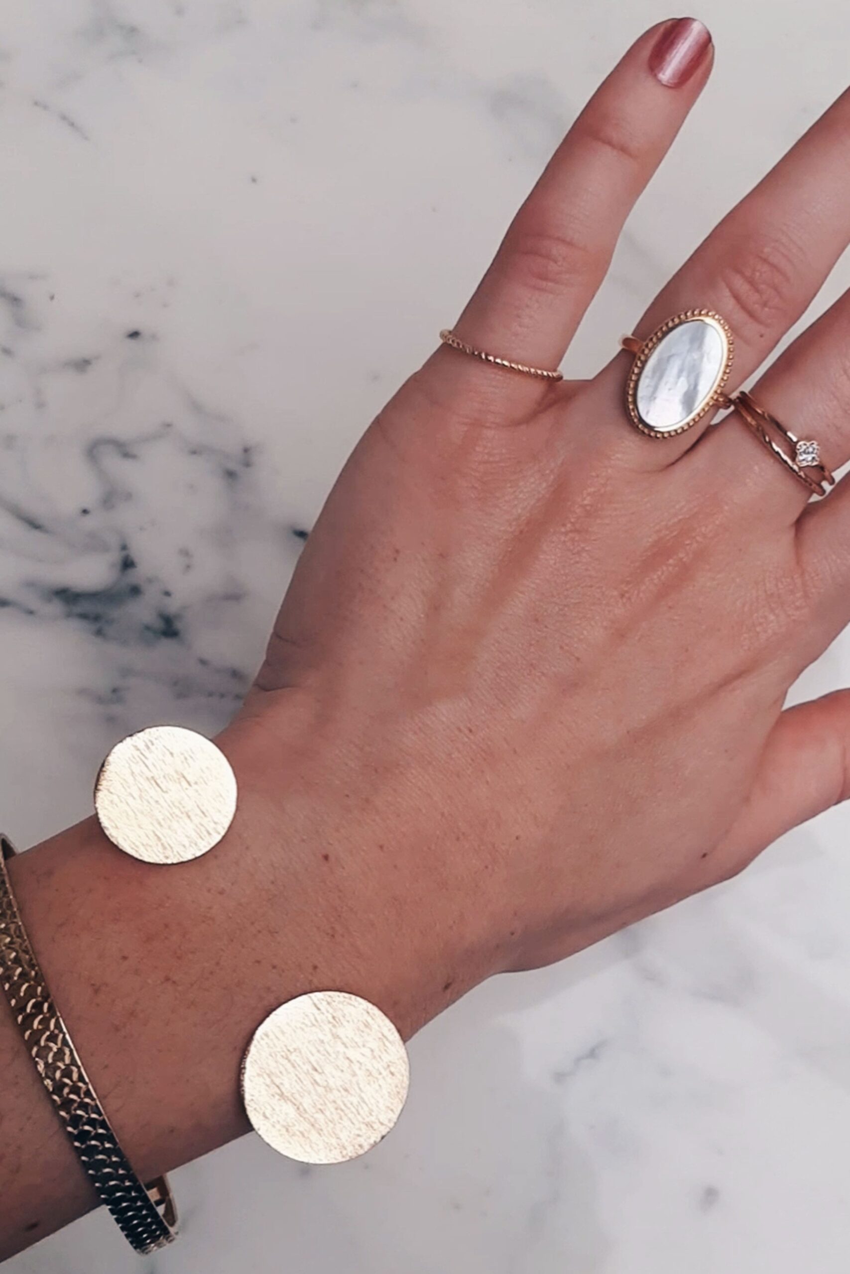 Très graphique et minimaliste, le jonc Calypso viendra apporter une touche de modernité et de lumière à votre poignet.