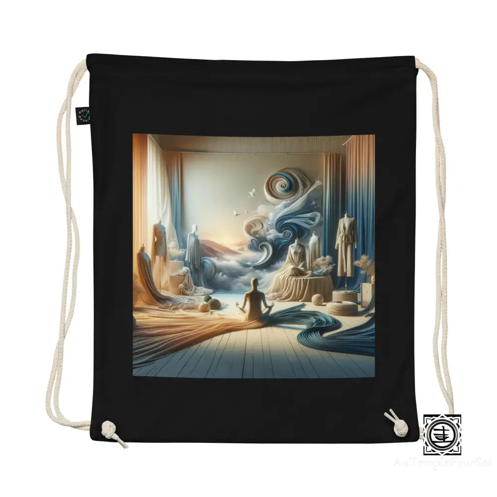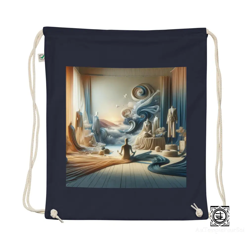 Découvrez l’élégance fonctionnelle avec notre sac Au Temple Pour Soi à cordon en coton biologique « L’Atelier de Soi ».