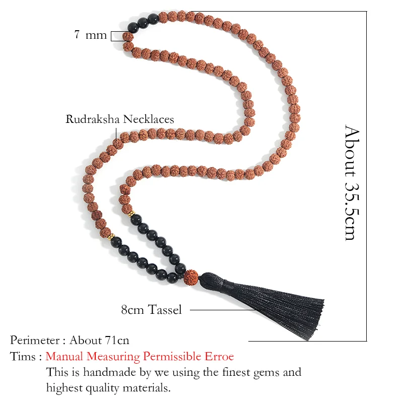 • Matériaux de Qualité : Onyx noir lisse et graines naturelles de Rudraksha.