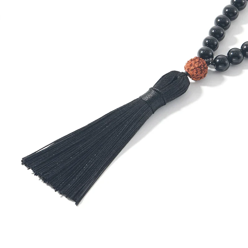 « Mala de la Protection » 108 perles en Onyx Noir et Rudraksha