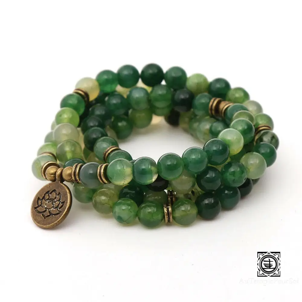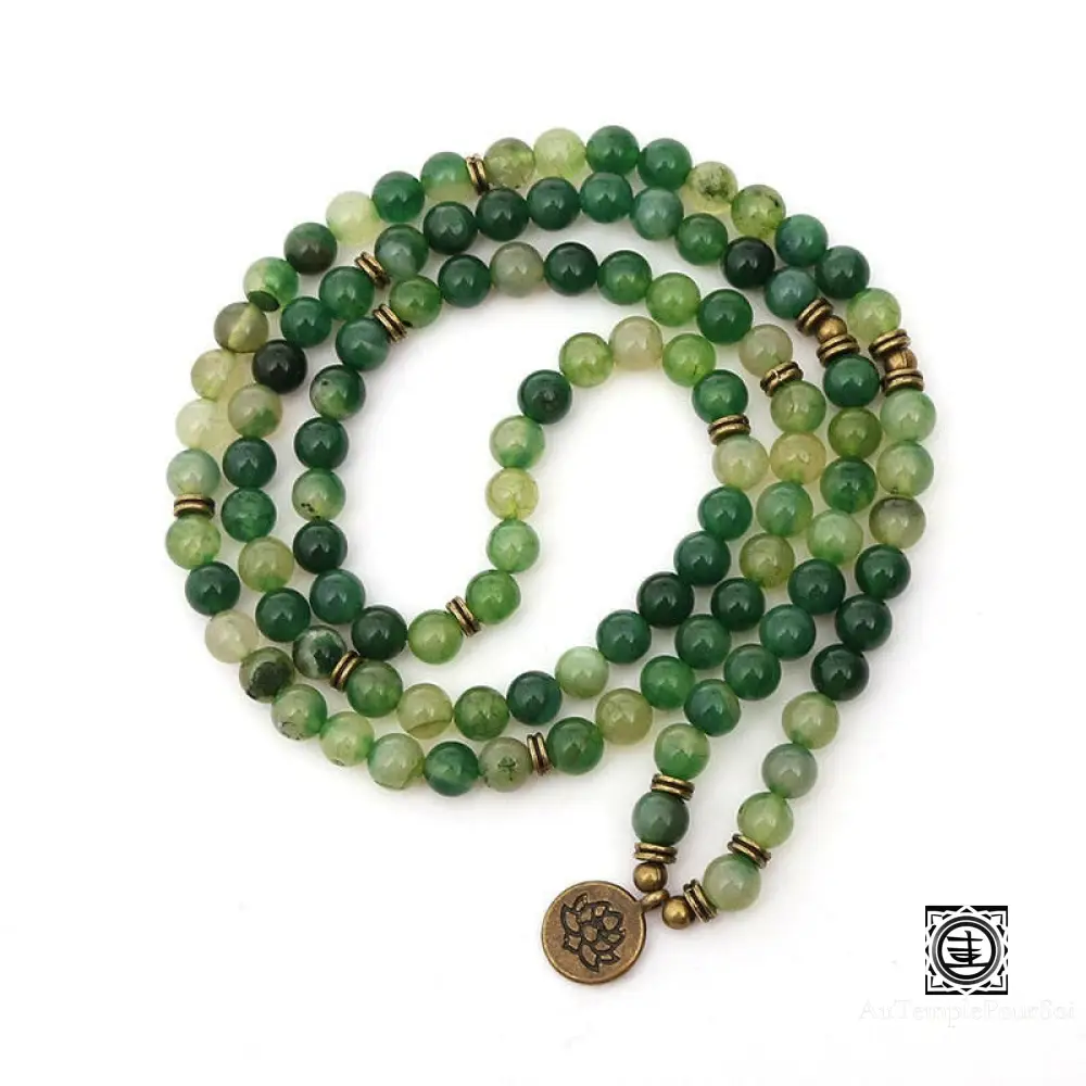Le Mala « Sagesse Ancienne » en Onyx vert naturel est un bijou composé de 108 perles conçu selon la tradition bouddhiste.