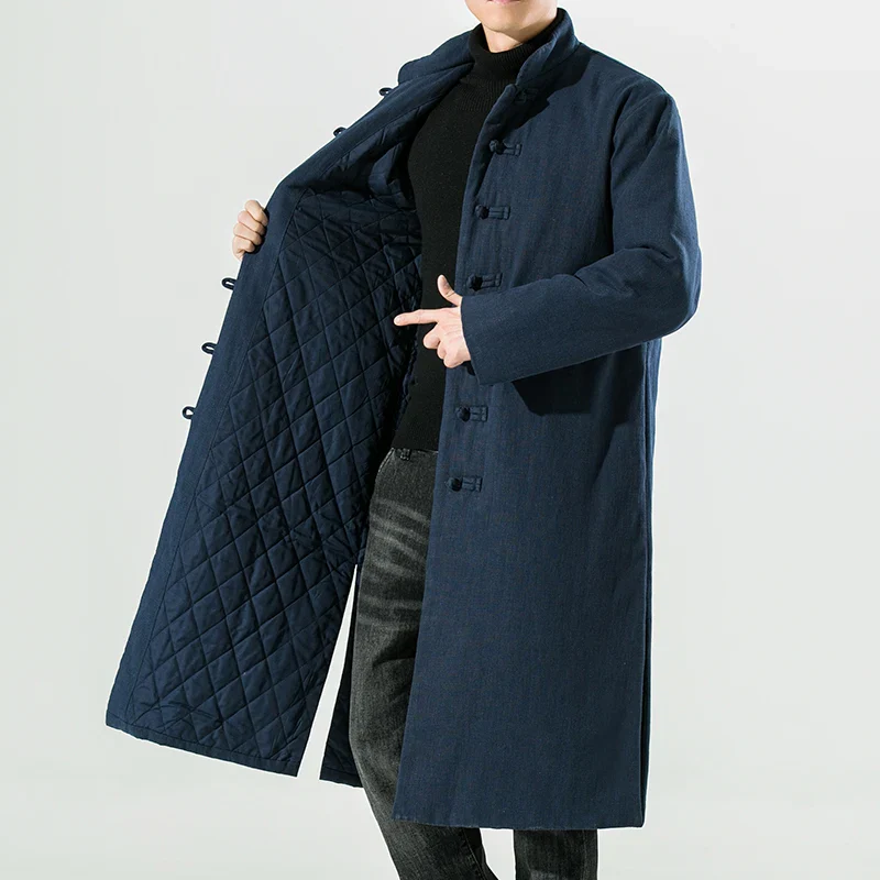 Manteau Chinois Homme en Laine Épaisse – Hanfu Moderne
