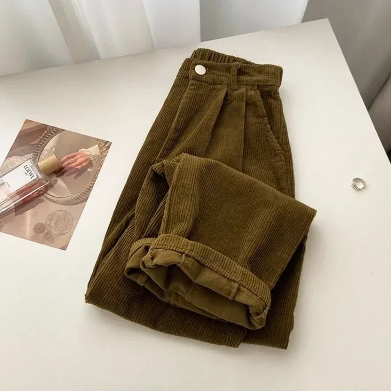 Découvrez notre Pantalon Taille Haute en Velours Côtelé pour Femme, un mélange parfait de style vintage et de confort moderne. Sa coupe droite baggy apporte une touche rétro tendance, tandis que sa taille haute flatteuse met en valeur votre silhouette. Parfait pour un look décontracté chic qui se démarque.