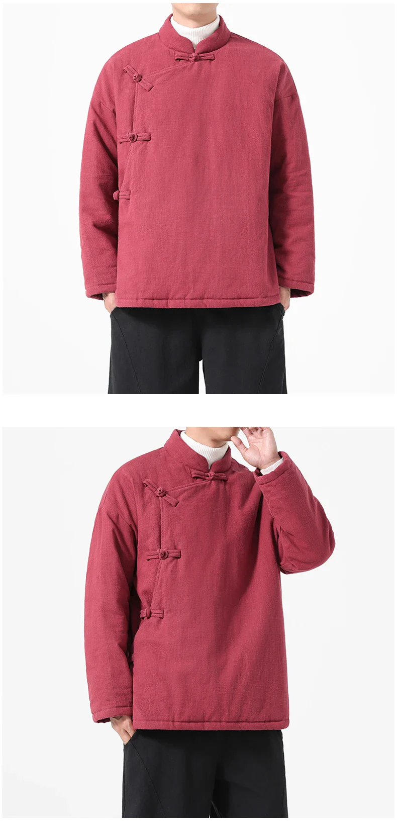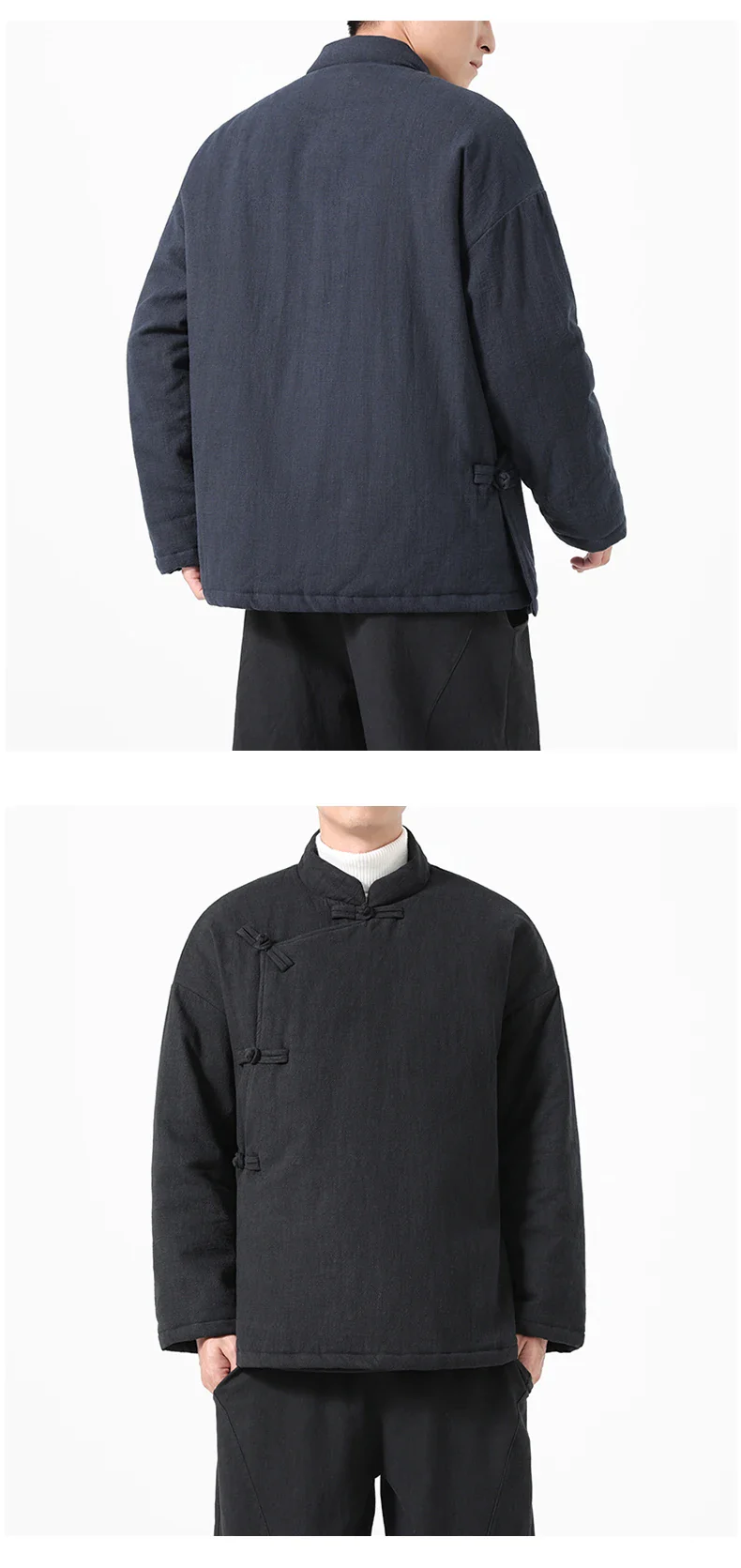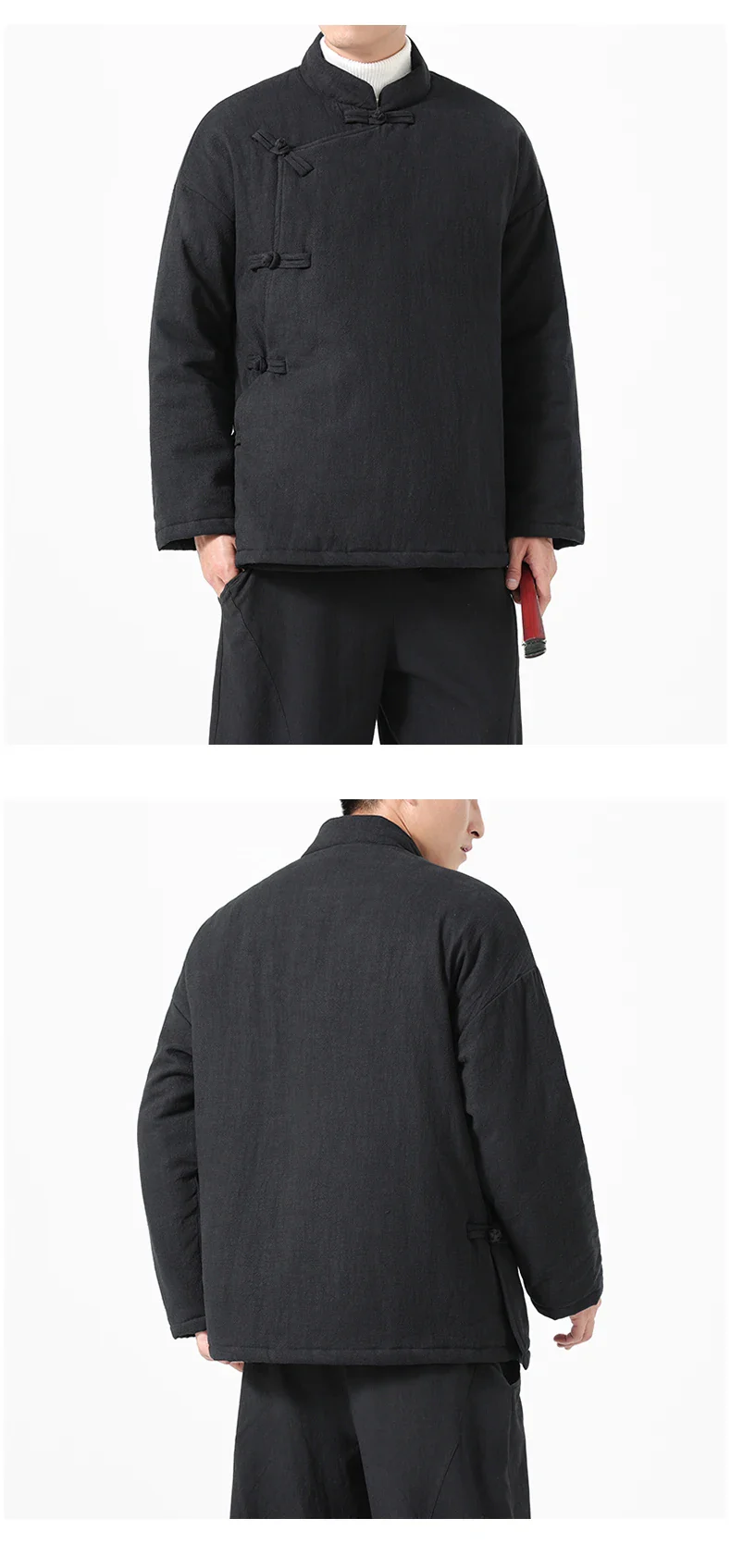Conçu comme un véritable hanfu jacket hiver, ce modèle est généreusement rembourré et matelassé pour garantir une isolation parfaite contre le froid. Sa coupe lâche et confortable permet une grande liberté de mouvement tout en restant bien au chaud. Ce manteau chinois homme épais est l’allié idéal pour affronter la saison hivernale avec style.