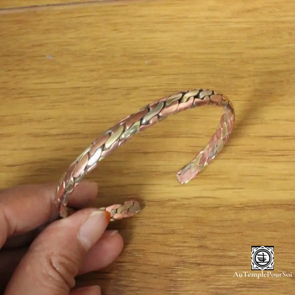 La collection « Résonance Tibétaine » s’enrichit de ce splendide bracelet en cuivre tressé, une véritable célébration de l’art et de la culture tibétains. Son design tressé est le symbole d’une union entre la tradition et la modernité, façonné avec précision par des mains expertes.