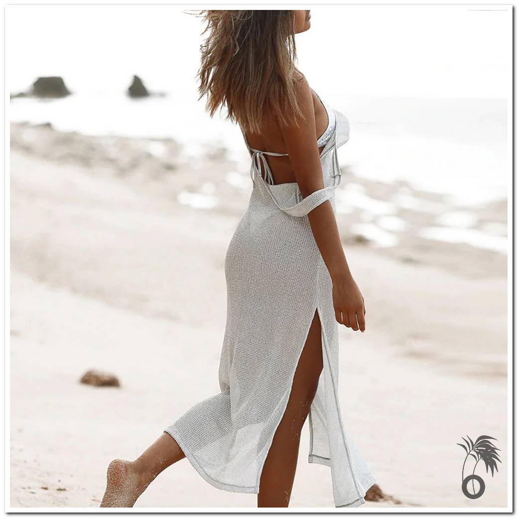 Le style simple de la coupe est rehaussé par un tissu finement texturé qui donne tout son charme à cette robe de plage blanche.