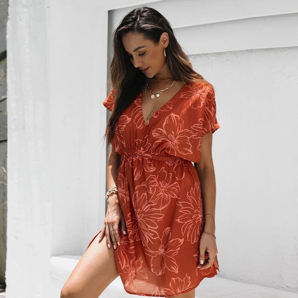 Découvrez notre magnifique robe de plage pour femme avec une encolure plongeante qui met en valeur votre silhouette avec élégance et féminité. Parfaite pour vos journées ensoleillées à la plage ou au bord de la piscine.