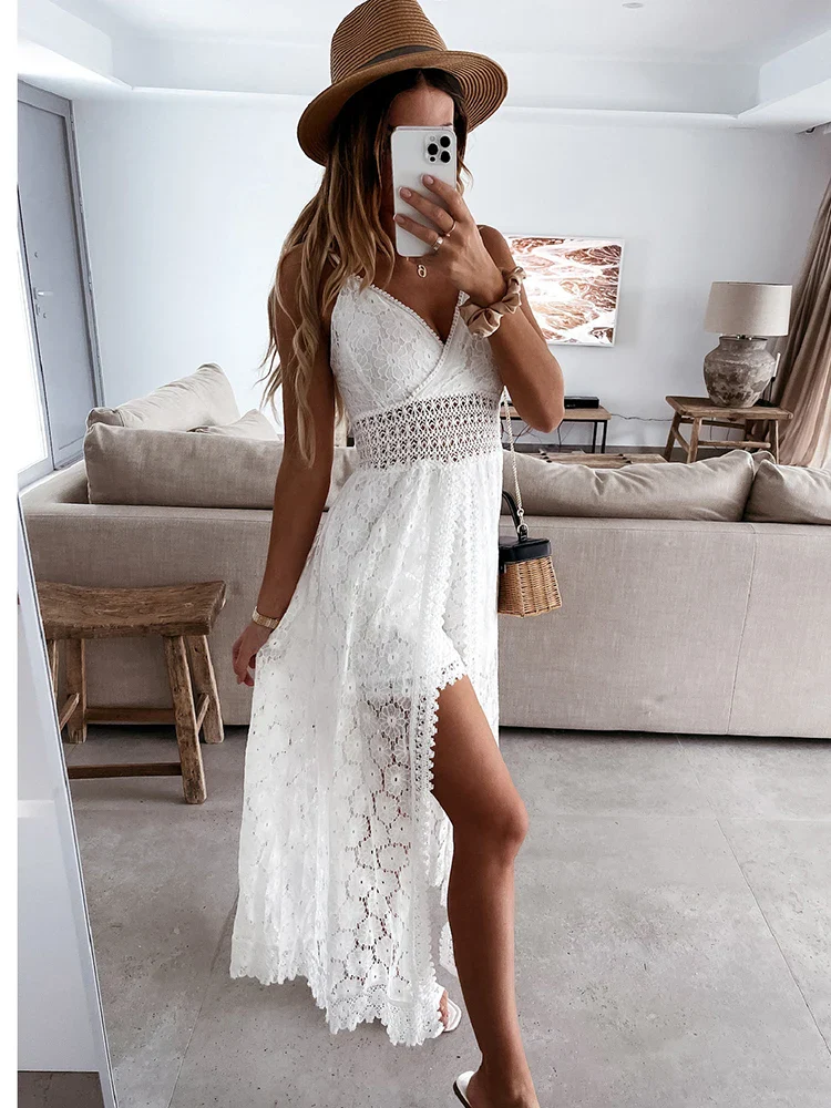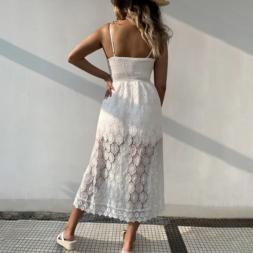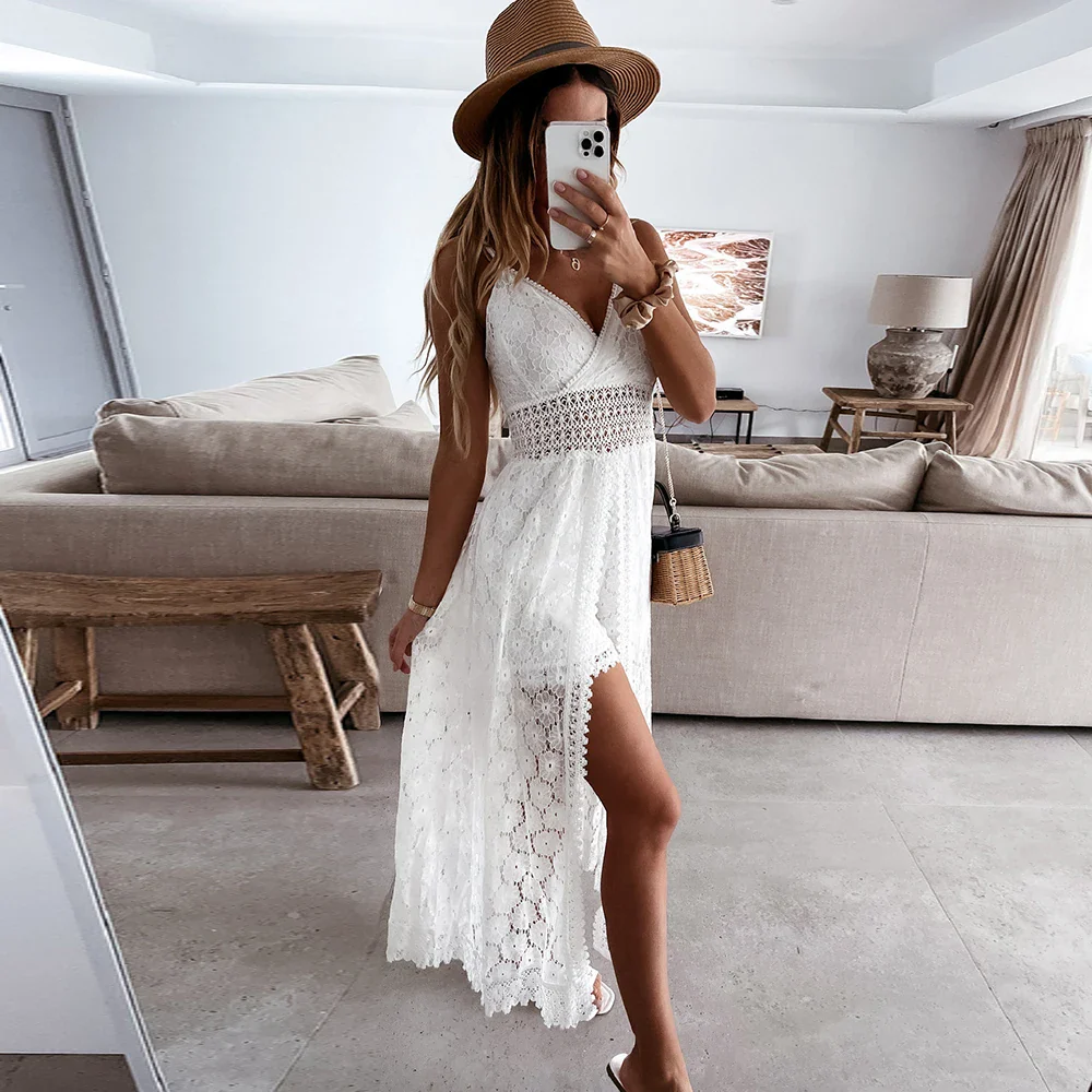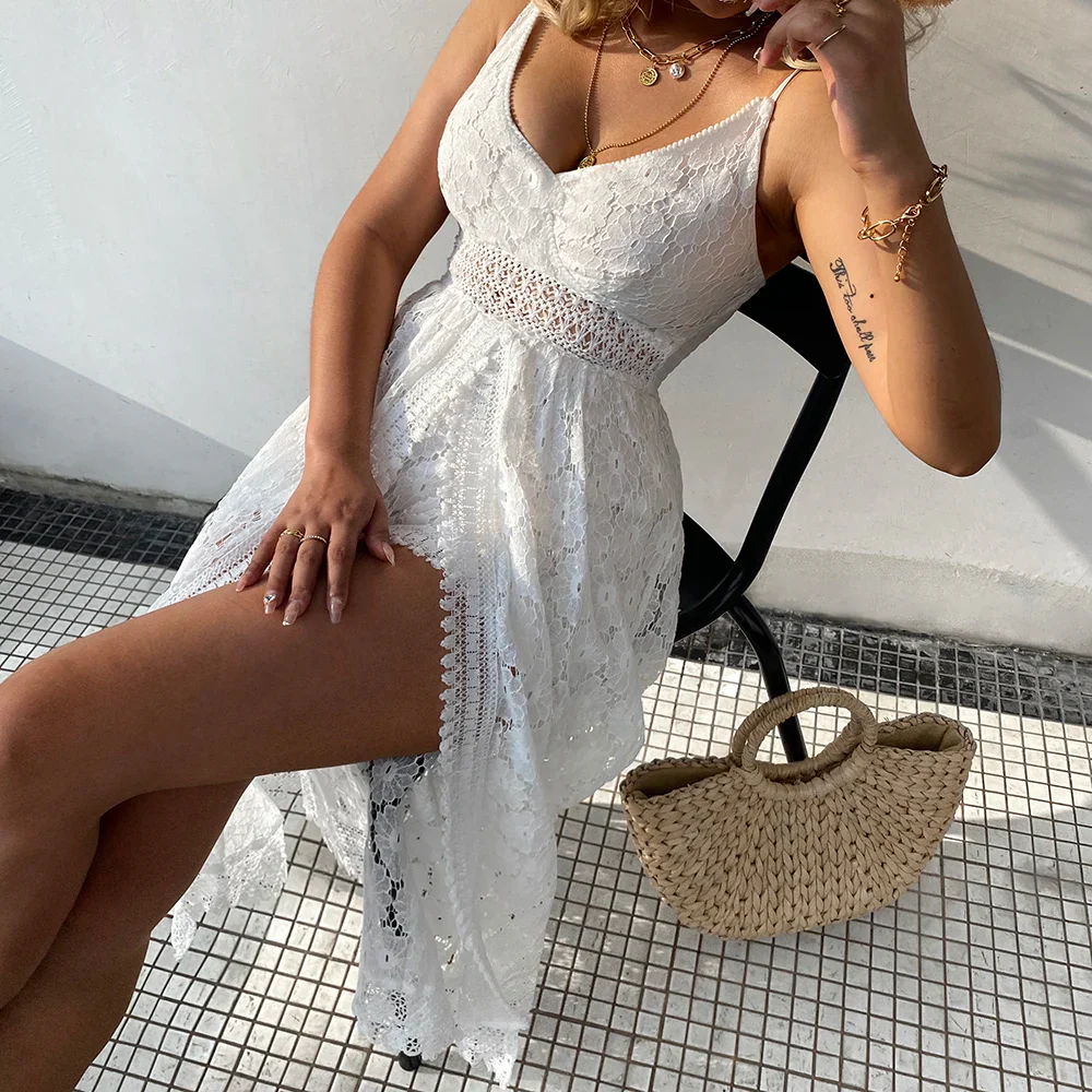 Découvrez notre magnifique robe de plage femme blanche à bretelles fines, parfaite pour vos journées ensoleillées à la plage.