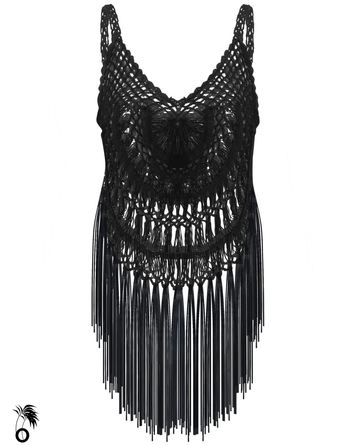Parfaite pour l’été et pour la plage, cette robe d’été au crochet sexy noire ajourée au crochet réalisée à la main est idéale par dessus le maillot de bain pour profiter du soleil, du sable et de la mer en toute liberté.