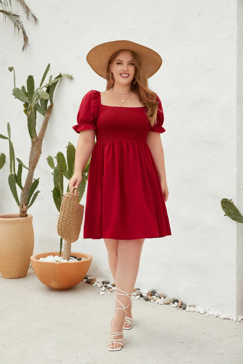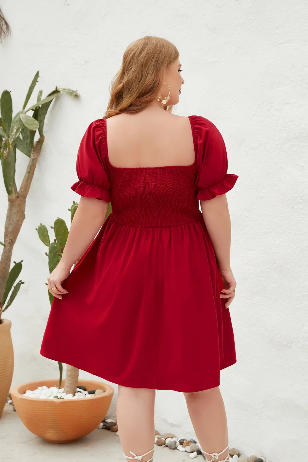 Séduisante et confortable, cette robe évasée grande taille est parfaite pour la saison estivale. Avec ses manches courtes bouffantes et son haut smocké, elle s’adapte à votre silhouette tout en vous offrant un look féminin et tendance. Sa coupe courte et fluide assure une grande liberté de mouvement, idéale pour une journée ensoleillée, à la plage ou en balade.