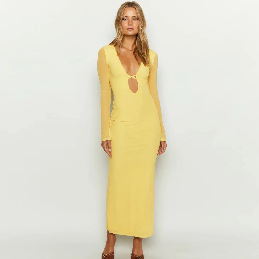 Cette robe longue décolletée séduit par sa coupe sensuelle et raffinée. Conçue dans un tissu fluide et extensible, elle épouse parfaitement la silhouette tout en offrant un confort optimal. Son décolleté profond croisé apporte une touche glamour. Idéale pour les soirées estivales, les cocktails ou les occasions spéciales.