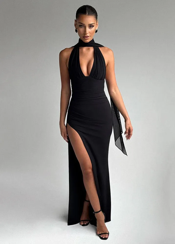 Sublimez votre silhouette avec cette robe longue fente haute, une pièce iconique à l’allure hollywoodienne. Sa coupe près du corps met en valeur chaque courbe, tandis que son décolleté plongeant et son drapé en voile au dos apportent un charme magnétique. Idéale pour une soirée de gala, un événement formel ou une entrée remarquée, cette robe incarne la séduction moderne avec puissance et grâce.