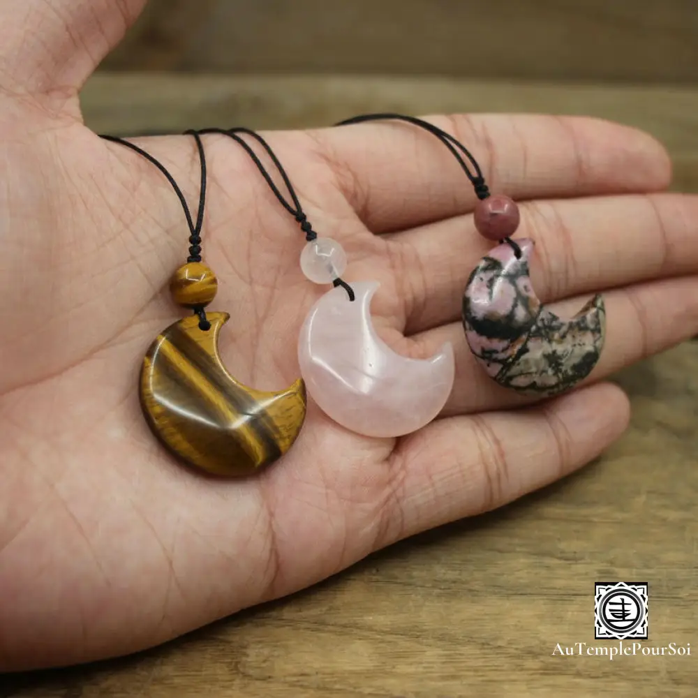 Découvrez notre magnifique collection de pendentifs en forme de croissant de lune, chacun avec sa propre pierre précieuse unique, symbolisant la féminité, l’intuition et la connexion avec les énergies lunaires.